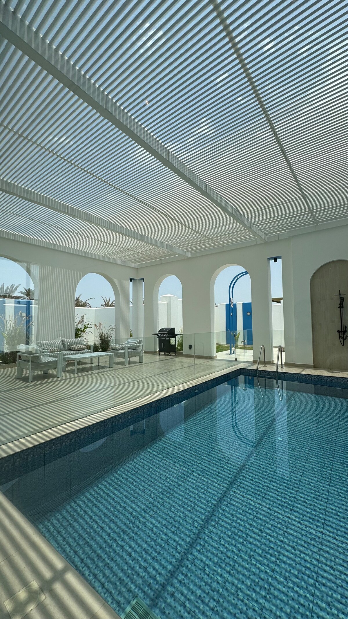 A modern couples-only Villa designed for a unique, relaxing escape in a stylish and contemporary atmosphere. Enjoy a private swimming pool with complete privacy and no overlooking from neighbors, a double-height living room, and a master bedroom with beautiful views of the pool creating a seamless indoor–outdoor experience The swimming pool is temperature-controlled for year-round comfort. A quiet, safe, and private retreat, located just 40 km (35 minutes) from Muscat International Airport.