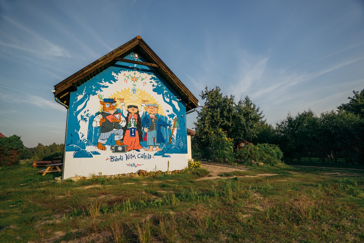 Το εξοχικό είναι για άτομα που αναζητούν περιπέτεια και χαλάρωση. Ξεκινήστε τη μέρα σας με μια βόλτα στο τοπικό κατάστημα για φρέσκο ψωμί, στη συνέχεια, πρωινό στον κήπο με φρούτα από τον οπωρώνα, χαλαρώστε στην αιώρα, ακούστε τους πελαργούς και παρατηρήστε πουλιά όπως τον κεχριμπαρένιο. Περίπου 3 χιλιόμετρα από το εξοχικό υπάρχει το Tleń με πολλά εστιατόρια, σπα και ενοικίαση καγιάκ. Επίσης, μπορείτε να κάνετε ιππασία και μανιταροσυλλογή σε κοντινή απόσταση. Το εξοχικό φιλοξενεί τέσσερα άτομα, υπάρχει ένα μπάνιο με ντους, για να έχετε ζεστό νερό, πρέπει να ανάψετε φωτιά στην εστία.