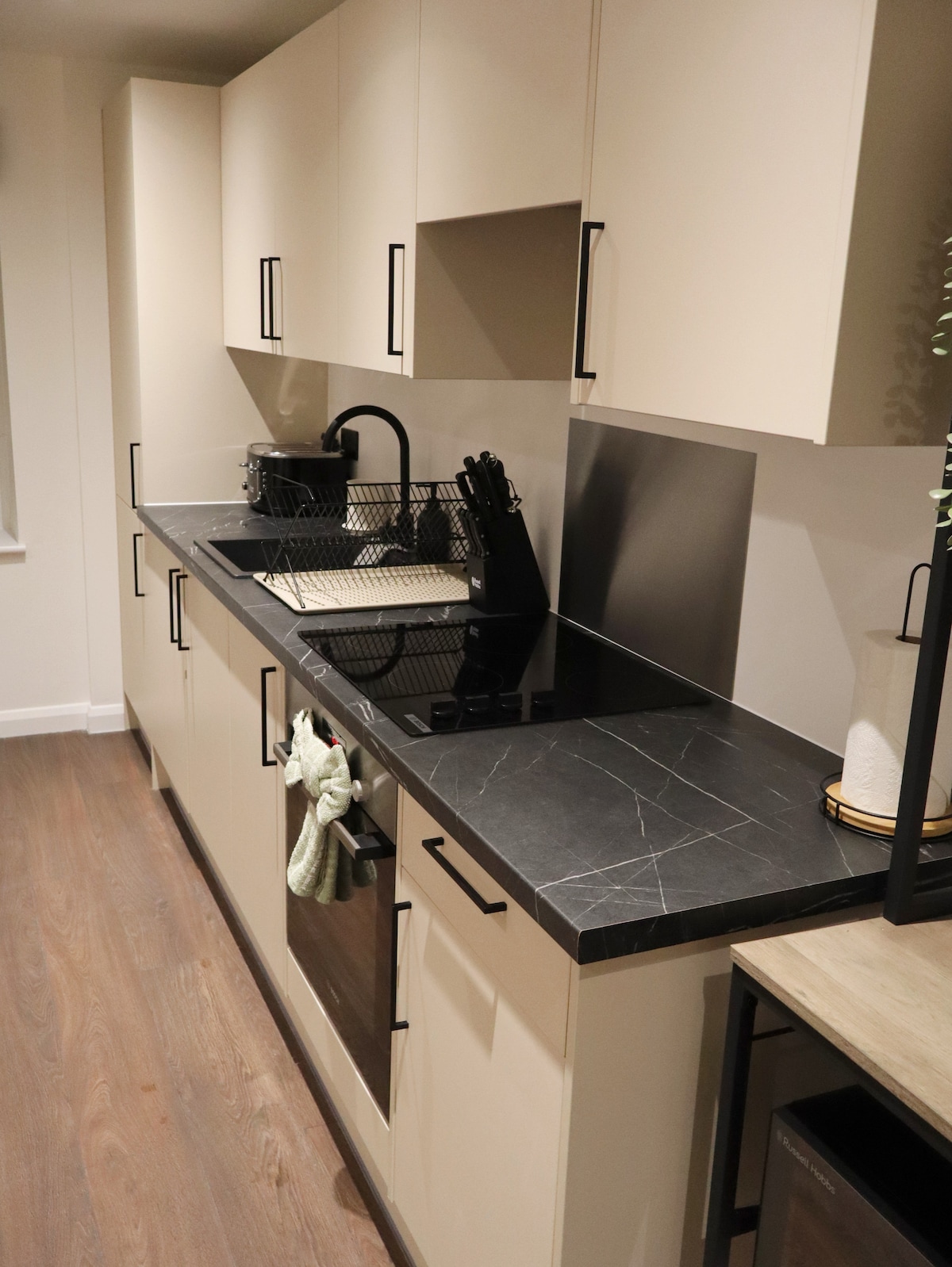 Modern and stylish apartment located in town centre. Apartment provides free private parking, van or car. Two-bedroom apartment is equipped with a 50" flat-screen TV with streaming services, a fully equipped kitchen with a dishwasher, washing machine and an oven, and 1 bathroom. Towels, bed linen are provided in the apartment. All amenities are 2-10 min walkable, takeaway 2min walk, grocery shops are 5 min walk. Train 15 min walk The nearest airport is Bristol Airport, 47 miles.