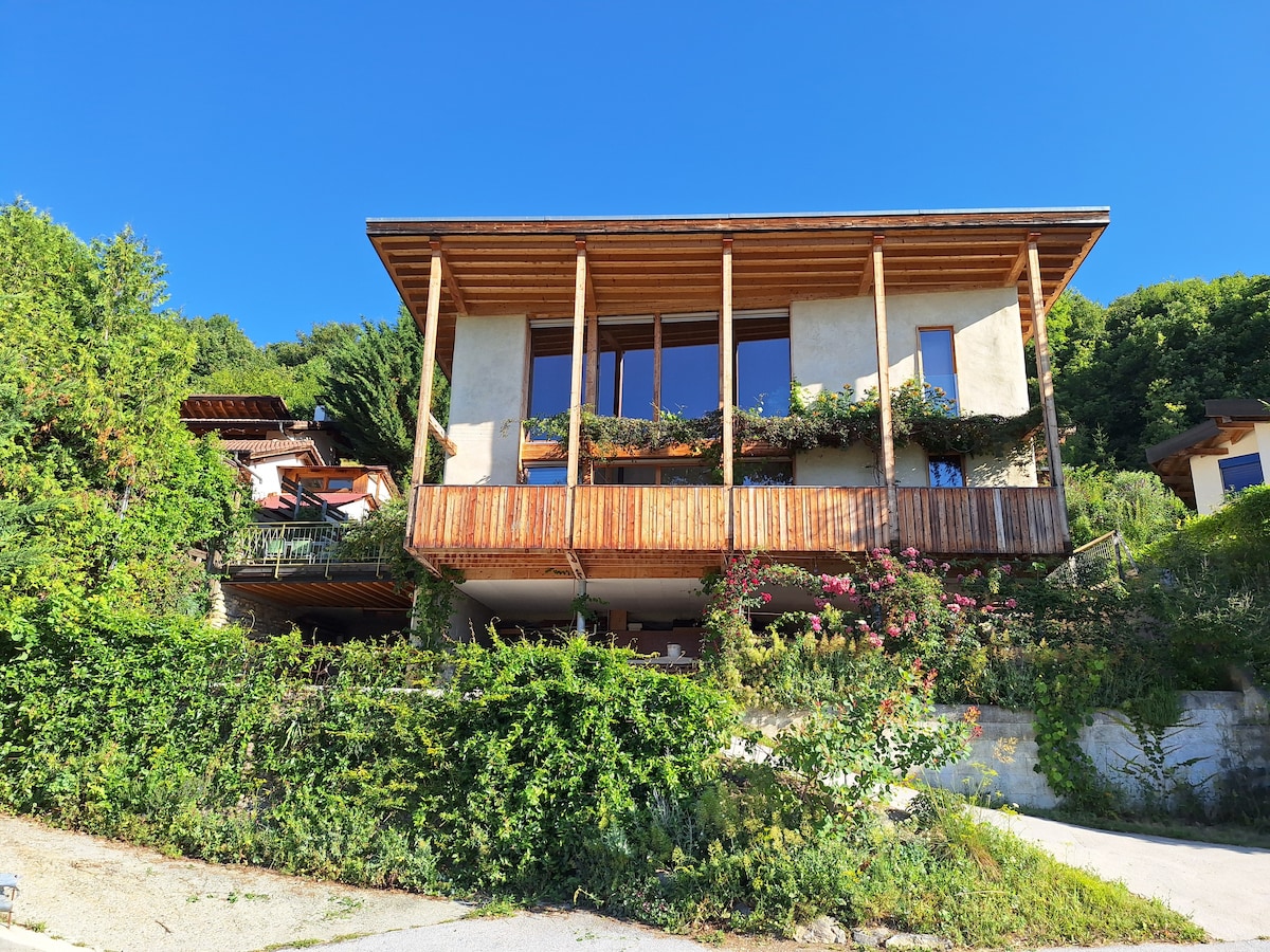 Profitez en famille de cette construction écologique en paille, baignée de lumière naturelle et face au Val d'Hérens Cette maison d'architecte vous propose une chambre parent et sa douche au rez. A l'étage, 3 chambres, une salle de bain ainsi qu'une mezzanine se disposent autour du foyer en double hauteur Le balcon plein sud et la terrasse ouest vous offriront la fraicheur pour vos soirées estivales La forêt et le bisse sont accessibles à pied en quelques minutes. A 12 min de Sion en voiture