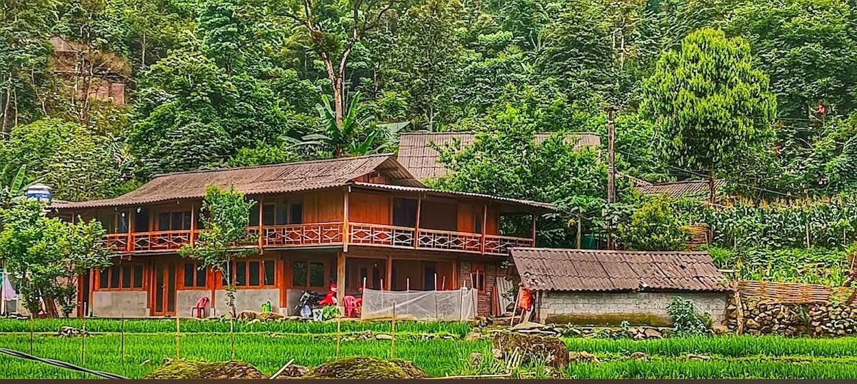 This wooden bungalow is surrounded by mountains and rice terraces. Wake up to a beautiful mountain view and enjoy the peaceful village atmosphere. The natural wooden design creates a warm and relaxing space close to nature. Located 14 km from Sapa town, it is quiet yet still offers stable mobile signal and reliable internet, perfect for both relaxing and staying connected. It’s an ideal place to slow down, enjoy fresh air, and experience authentic local life. #Enjoy this moment😁😁😁