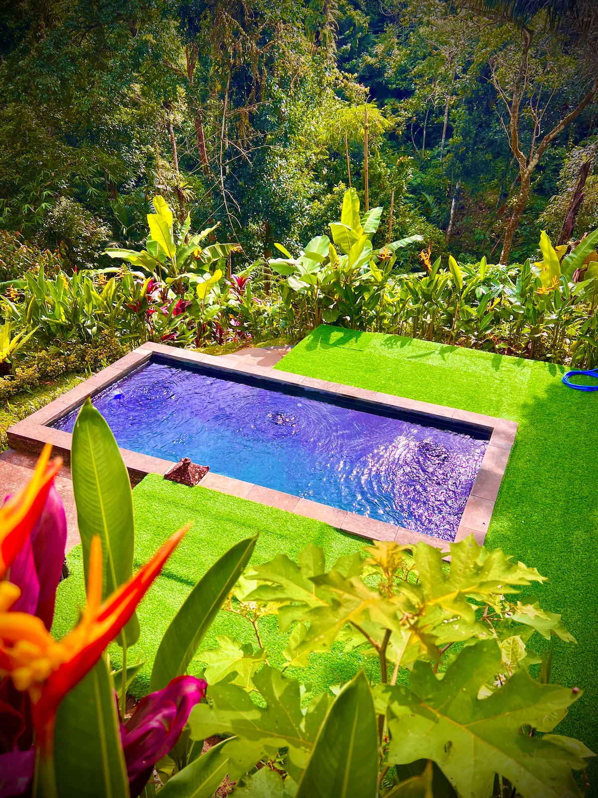 A mountain retreat bordering the UNESCO Heritage site Jatiluwih, equipped with a swimming pool facing the ricefields, a large garden and gazebo. You will be immerged into the Balinese rural life away from the tourist crowds, spending a few days hiking, relaxing in the hotprings, visiting Batukaru temple and the butterfly park, enjoying massage facing sunset, investigating local iconography in churches, with meals served by the neighbors or a nearby Balinese restaurant.