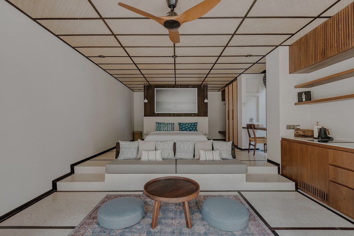 Καλώς ήρθατε στο ολοκαίνουργιο δωμάτιο της σουίτας μας, που εμπνέει απαλή αισθητική για δημιουργικούς ταξιδιώτες. Δωμάτιο 1 κρεβατιού εμπνευσμένο από τον ακατέργαστο μεσογειακό σχεδιασμό, στο ζωντανό και ήσυχο μέρος στη μοντέρνα περιοχή Canggu. Το ακίνητο προσφέρει μια ευχάριστη εμπειρία πολυτελούς διαβίωσης. Η ιδιοκτησία απέχει λίγα λεπτά από το νεότερο πολυτελές εστιατόριο της περιοχής, μόλις 5 λεπτά με το αυτοκίνητο, ή απολαύστε την γαλήνια ατμόσφαιρα της παραλίας μόλις 7 λεπτά από την πόρτα σας.