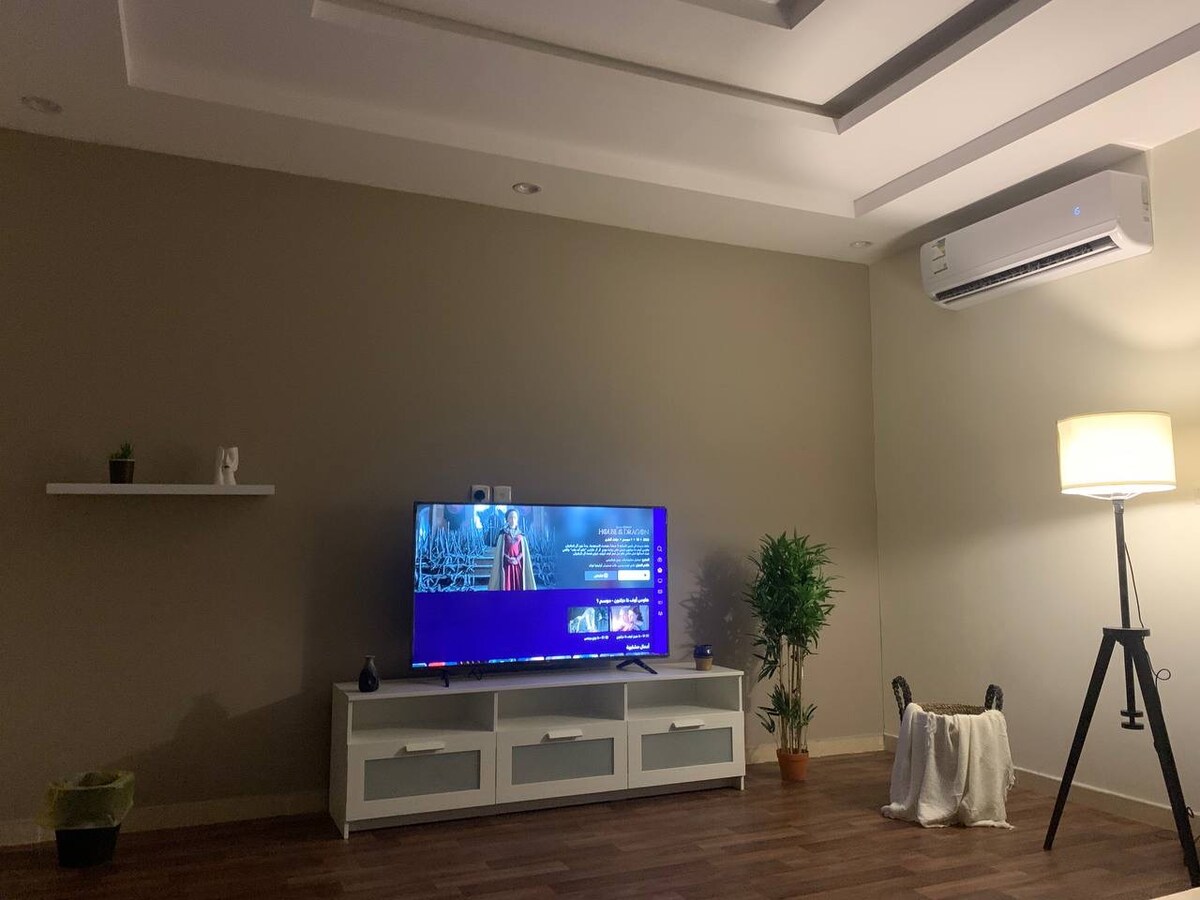 Χαλαρώστε σε αυτήν την ήσυχη και κομψή κατοικία. Απολαύστε τη διαμονή σας σαν να είστε στο σπίτι σας. Ένα ήσυχο διαμέρισμα σε στιλ sudu που αποτελείται από ένα σαλόνι και δύο υπνοδωμάτια, ένα ( με υπέρδιπλο κρεβάτι) και ένα ( με υπέρδιπλο κρεβάτι), μια κουζίνα αμερικανικού τύπου και δύο μπάνια. Τα πιο διάσημα εμπορικά κέντρα, εστιατόρια και ψυχαγωγία στο Ταμπούκ είναι εύκολα προσβάσιμα και απέχουν 10 λεπτά από το αεροδρόμιο Prince Sultan bin Abdulaziz. Το διαμέρισμα μπορεί να φιλοξενήσει 4 έως 5 άτομα Θα βρείτε όλα όσα χρειάζεστε για μια υπέροχη, πλήρη διαμονή. Σημείωση | Δεν προορίζεται για οικογένειες άνω των 5 ατόμων