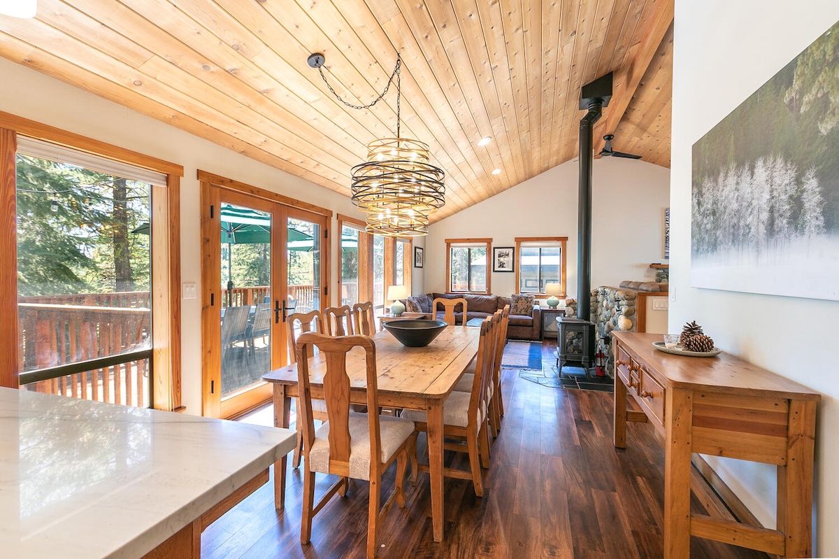 - Μεγάλη, ανοιχτή κάτοψη + μεγάλο δωμάτιο. - Θερμαινόμενα δάπεδα. - Κατάλυμα φιλικό προς τα κατοικίδια - Πλήρως εξοπλισμένη κουζίνα σεφ + πολυτελείς συσκευές. - Ιδιωτικό τζακούζι. - Ευρύχωρη πίσω βεράντα με ψησταριά και θέα στη φύση. - Κλασικά παιχνίδια: ποδοσφαιράκι, πινγκ πονγκ, επιτραπέζια παιχνίδια, τραμπολίνο (άνοιξη και καλοκαίρι) - Τζάκι με καύση ξύλου (παρέχεται ξύλο) - Ιδανικό για Σαββατοκύριακο με κορίτσια, οικογένειες και αποδράσεις στο Τάχο. - Φιλοξενεί 12 άτομα (έως 8 ενήλικες). - Πρόσβαση μόνο για επισκέπτες στις παροχές Tahoe Donner: Θερμαινόμενη πισίνα, γυμναστήριο, σκι και άλλα...