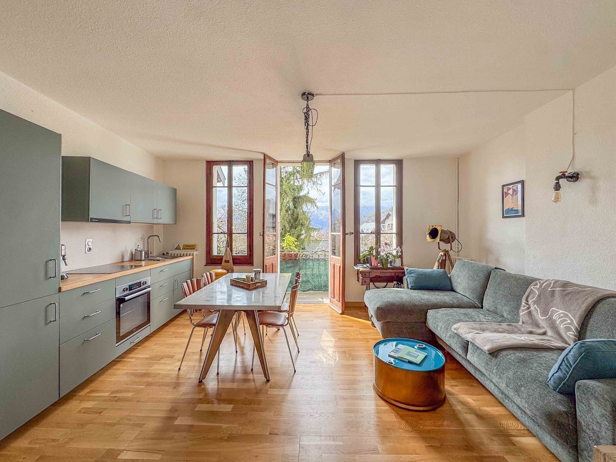Υπέροχο διαμέρισμα 4 αστέρων σε ένα εξαιρετικό περιβάλλον. 2 υπνοδωμάτια • ιδιωτικός ΧΏΡΟΣ ΣΤΆΘΜΕΥΣΗΣ για 2 αυτοκίνητα • WiFi υψηλής ταχύτητας • Προστατευμένη βεράντα με θέα στη λίμνη και το βουνό Κρεβάτια που γίνονται κατά την άφιξη, παρέχονται πετσέτες, συμπεριλαμβανομένου του καθαρισμού στο τέλος της διαμονής. Ιδανική τοποθεσία για επιτυχημένες διακοπές ☞ 5 λεπτά με τα πόδια από τη λίμνη ☞ 7 λεπτά με τα πόδια από τον διάσημο κόλπο του Talloires ☞ 2 λεπτά με τα πόδια από τα καταστήματα (αρτοποιείο, σούπερ μάρκετ, εστιατόρια, ενοικίαση ποδηλάτων).