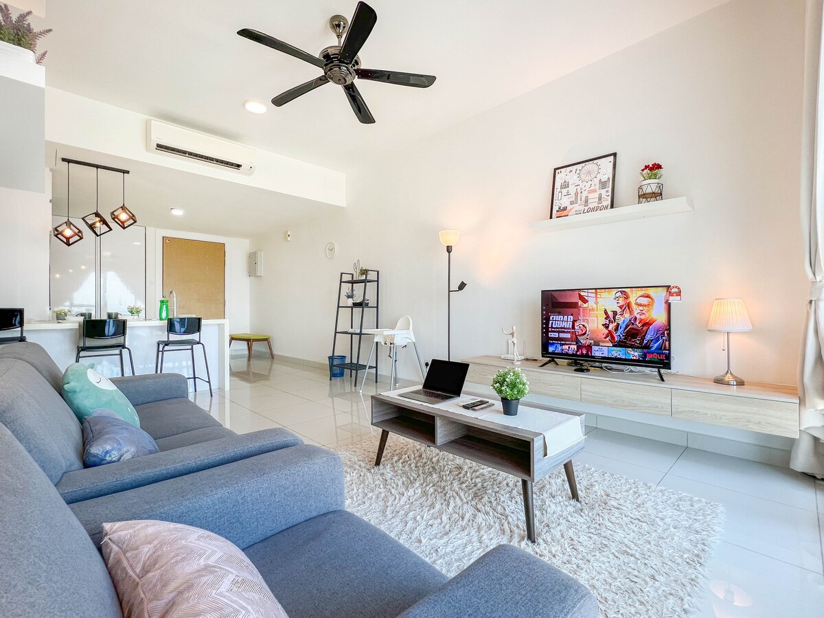 Welcome our cozy minimalist style 5pax 3bedroom !! ❤️Midori Green is located at Austin Heights area which can find a lot of entertainment place like famous restaurants, cafes, karaoke , bar & bistro , massage center and others a lot of entertainment at nearby !! 🛍️It is very suitable for families, groups of friends, business travelers and tourist🌻 Enjoy picturesque views, a cozy living room, dining area, well-equipped kitchen, comfortable bedrooms, and a balcony with stunning Mount Austin views⛳️