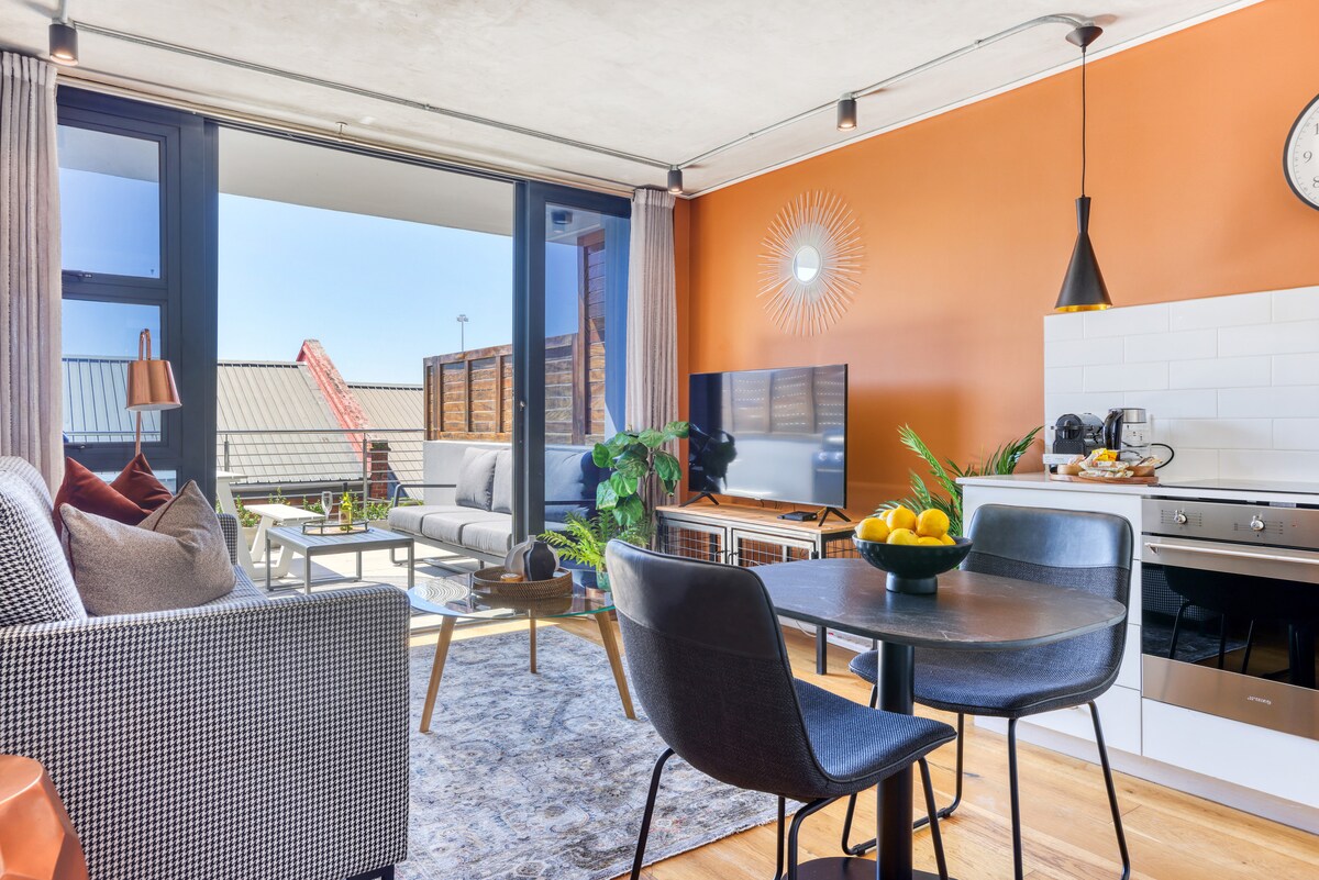 Get away, work and stay ! Our fantastic De Waterkant apartment with its 16 square meter terrace is waiting just for you to come and enjoy the perfect position of The Docklands building right in the beating heart of Cape Town's Atlantic Seaboard. The unit is tastefully decorated and has everything you may need to enjoy your stay. The building itself features a chic rooftop pool deck with sensational 360 degree views! *Zero power cuts in this building.