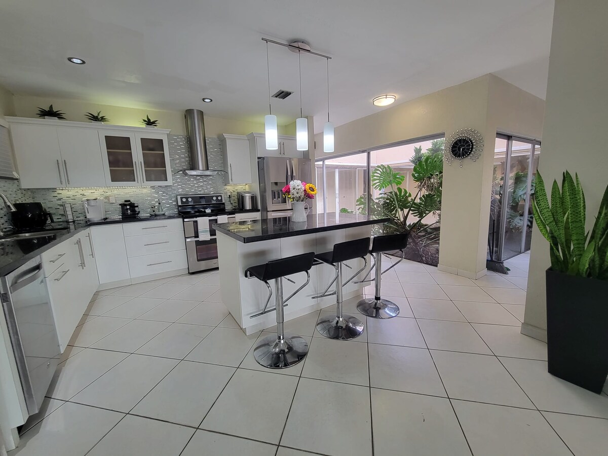 Beautiful modern fully renovated home In safe, friendly family oriented neighborhood.Centrally located close to Florida’s turnpike and ten minutes to Dolphin Mall, restaurants, shops all in walking distance. Guest from all cultures and backgrounds welcomed. I am looking forward to making your stay unforgettable. Property offers many amenities including big backyard where trailers and boats can be kept in fenced yard. There is also outdoor sitting and dining area with barbecue.