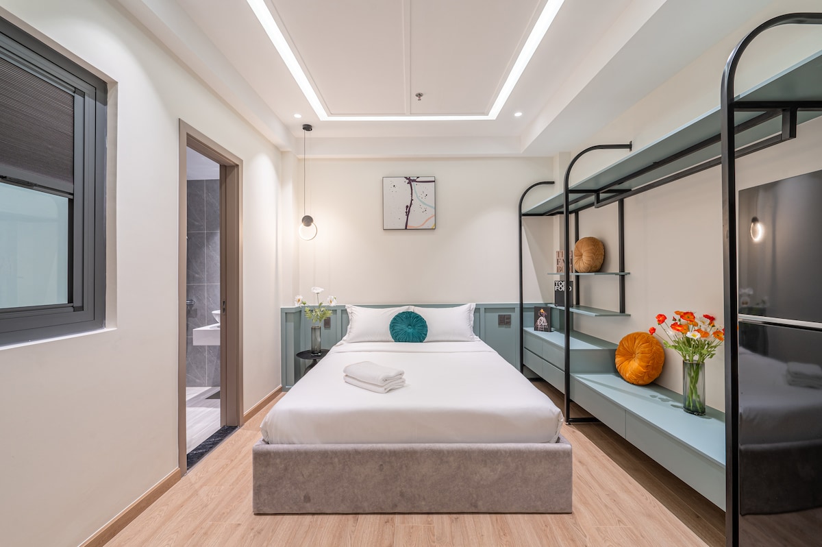 Το διαμέρισμα είναι κατάλληλο για επισκέπτες και οικογένειες που συνδυάζουν επαγγελματικό ταξίδι και διακοπές. Δίνει στους επισκέπτες την αίσθηση ότι μένουν σε ένα κομψό ξενοδοχείο, αλλά απολαμβάνουν μια οικογενειακή ατμόσφαιρα. - Υπέρδιπλο κρεβάτι 1,8 x 2 μέτρα και 1 καναπές-κρεβάτι 1,8 x 2 μέτρα για οικογένεια 4 ατόμων. - 2 τραπέζια εργασίας, 1 πιάνο, τηλεόραση 58" με περισσότερα από 100 δωρεάν κανάλια: Netflix, HBO, Max, Sports. - Χώρος μαγειρέματος, τραπέζι τσαγιού + τραπέζι φαγητού, μίνι μπαρ, ψυγείο, πλυντήριο ρούχων. - Δωρεάν πισίνα. - 5 λεπτά από το αεροδρόμιο.