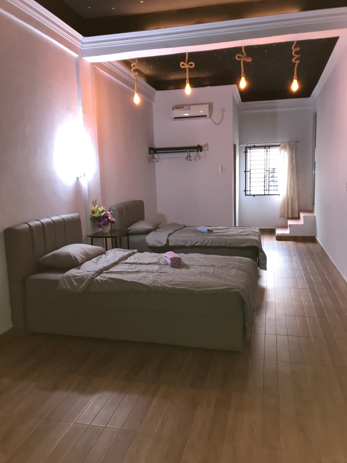 Αυτό το ευχάριστο σπίτι διαθέτει 2 υπνοδωμάτια μετρίου μεγέθους, 1 καναπέ-κρεβάτι, 1 πλήρως εξοπλισμένο μπάνιο με θερμοσίφωνα, σαλόνι με κλιματισμό και τηλεόραση συνδεδεμένη στο διαδίκτυο, μια μικρή κουζίνα μετρίου μεγέθους εξοπλισμένη με παροχές μαγειρέματος και τραπεζαρία για 5 άτομα. Κάθε δωμάτιο αποτελείται από κλιματισμό, ντουλάπα, 1 κρεβάτι queen size και 2 μονά κρεβάτια. Διαθέτει επίσης πίσω αυλή και μπροστινό αίθριο με λίμνη με ψάρια. Βρίσκεται κοντά στο κέντρο τροφίμων, την εμπορική περιοχή, την κλινική 24 ωρών και το αεροδρόμιο. Επίσης, διατίθενται πλυντήριο ρούχων, ψυγείο και θυρίδα ασφαλείας.