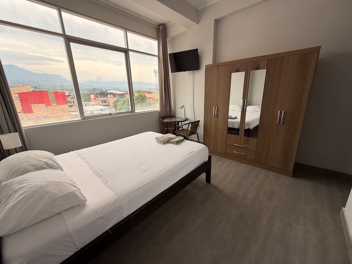 La habitación 4 de CasaMAR (cuarto nivel) es ideal para viajeros que desean tener cada uno su propia cama. Contamos con todas las comodidades dentro de la misma recámara: baño privado, aire acondicionado, área de trabajo. En el piso superior: cocina, comedor, refrigerador y gym (compartido). Así mismo, al estar ubicados en una zona céntrica de Tarapoto, tenemos cerca tiendas de abarrotes, farmacias, restaurantes, entre otros. Estamos a solo 3 minutos (mototaxi) de la plaza mayor de la ciudad.