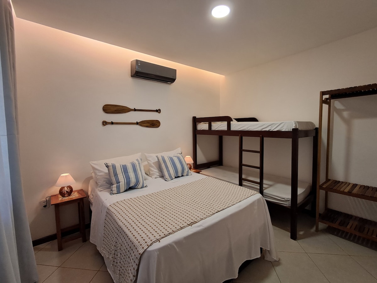Ευρύχωρη οροφή! Κοντά στις κύριες παραλίες Búzios και Centro (Rua das Pedras). Αμερικανική κουζίνα σε ανοιχτή ιδέα, τραπεζαρία και σαλόνι ενσωματωμένη με τηλεόραση επίπεδης οθόνης 50", εξωτερική κουζίνα, γκουρμέ χώρο (μπάρμπεκιου), μεγάλη και δροσερή βεράντα με κοινωνικό χώρο (καναπές, τραπέζια και αιώρα). Εσωτερικό και εξωτερικό μπάνιο + 1 μπάνιο . 1 Άνετο δωμάτιο: διπλό κρεβάτι, κλιματισμός και καλωδιακή τηλεόραση. Ημιώροφος: 1 διπλό κρεβάτι, 2 μονά κρεβάτια, 1 καναπές-κρεβάτι, κλιματισμός, τηλεόραση και lavabo.