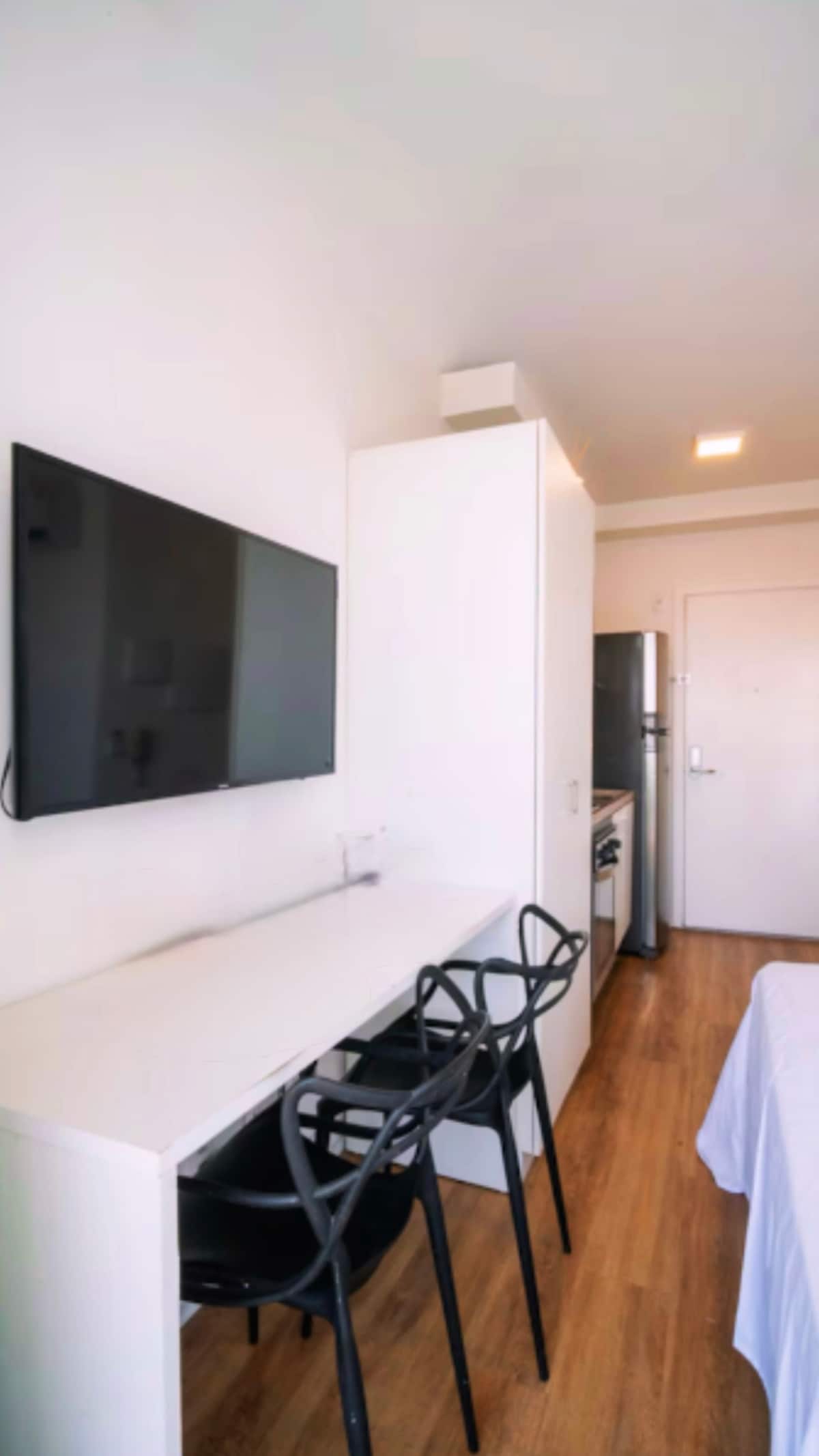 Νέο στούντιο στο κέντρο σε ένα μοντέρνο διαμέρισμα, με όλες τις παροχές που χρειάζεστε για τη διαμονή σας στο Σάο Πάολο. ΤΟΠΟΘΕΣΙΑ: Δίπλα στις λεωφόρους 23 de Maio και 9 de Julho Κοντά στο μετρό Εύκολη πρόσβαση σε αεροδρόμια, Expo Center Norte, Anhembi και κύρια τουριστικά σημεία (πάρκο Ibirapuera, Avenida Paulista, κέντρο) Equipado με μαγειρικά σκεύη Πλήρες σετ κλινοσκεπασμάτων και πετσετών μπάνιου Γρήγορο ίντερνετ Άφιξη και αναχώρηση χωρίς παρουσία οικοδεσπότη Μεγάλη ποικιλία από εστιατόρια, μπαρ και καταστήματα σε κοντινή απόσταση.