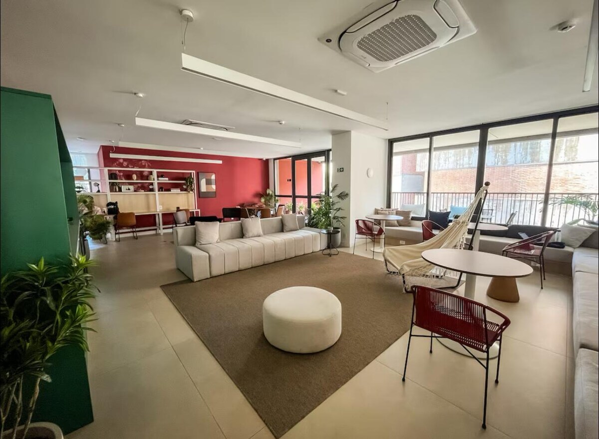 The studio is brand new, well-decorated, and equipped with high-quality products, providing comfort and coziness for your stay. The building is located in the center of São Paulo, in the Bela Vista neighborhood, well-known for its pasta restaurants and easy access to the city's main tourist attractions, transportation, and event centers. The building is residential, with 24-hour security, parking, and an elevator. We have more studios in this building in case you come with your family!