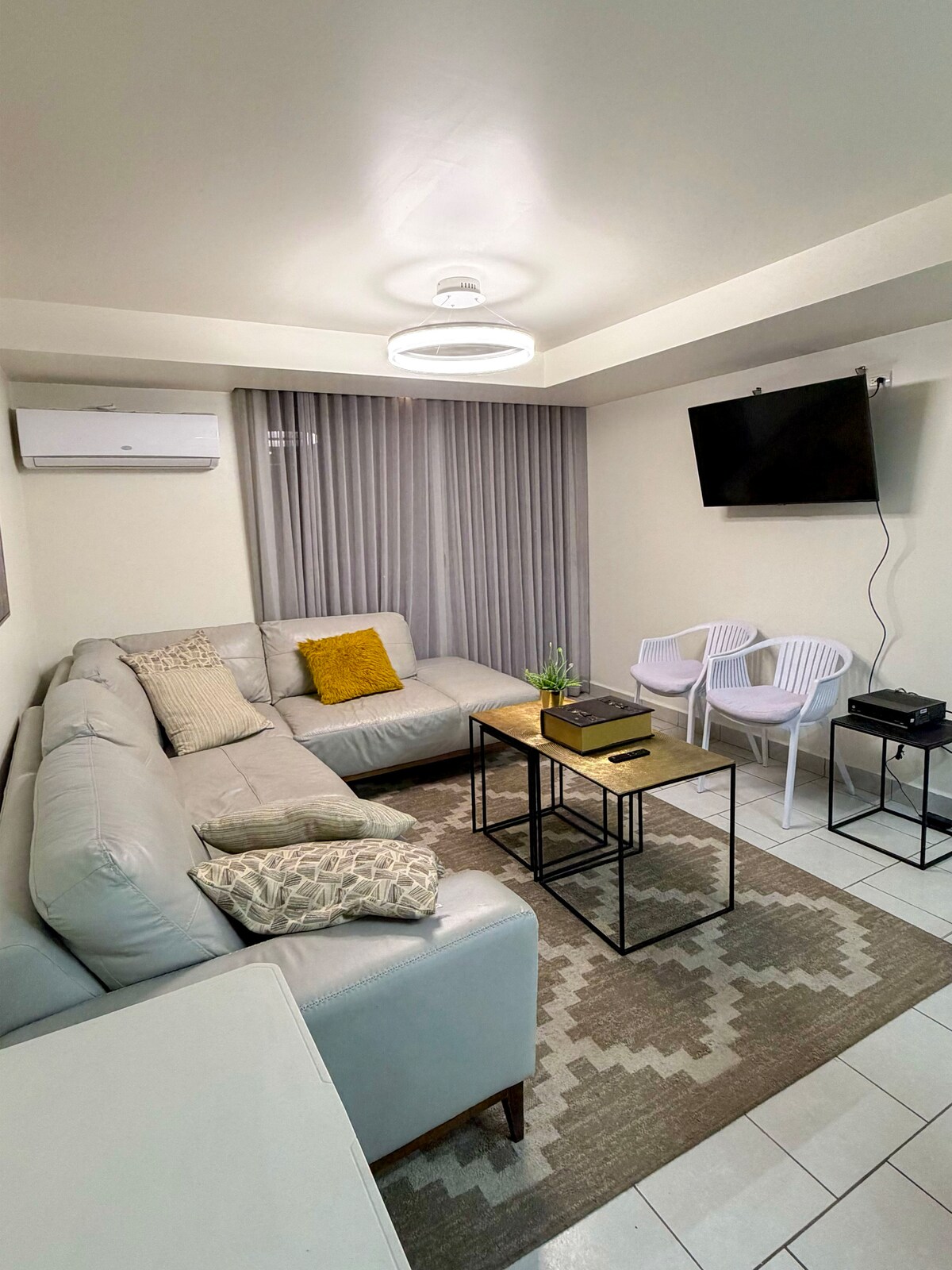 Casa amplia, moderna y cómoda, ideal para reuniones tranquilas con familia y amigos, descanso y estadías largas. Disfruta de vistas panorámicas a la ciudad, espacios amplios, dos salas cómodas y cocina equipada. Cada habitación cuenta con baño privado, walk-in closet, aire acondicionado y televisión, brindando privacidad y confort. La terraza incluye TV y la segunda sala es ideal para ver películas en familia. Ubicada en zona residencial tranquila. 🔕 No se permiten fiestas ni música alta.