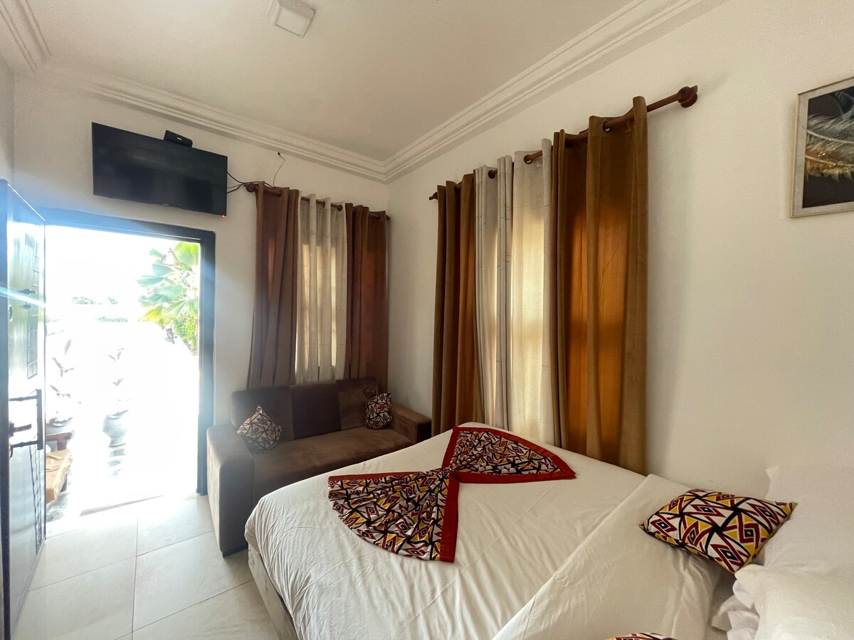 Μια διάσημη boutique μονάδα διαμονής σε κοντινή απόσταση από το διεθνές αεροδρόμιο Kotoka και την πόλη East-Legon. Πλήρως εξοπλισμένα με ιδιωτικό μπάνιο 16 δωμάτια και άλλα χαρακτηριστικά: - Wi-fi πρόσβαση - Τηλεόραση με επίπεδη οθόνη - Πλήρως εξοπλισμένες ντουλάπες - Σαλόνι - Κλιματιζόμενα δωμάτια μέσω out - Ψυγείο σε κάθε δωμάτιο. - Μονάδα γεννήτριας.