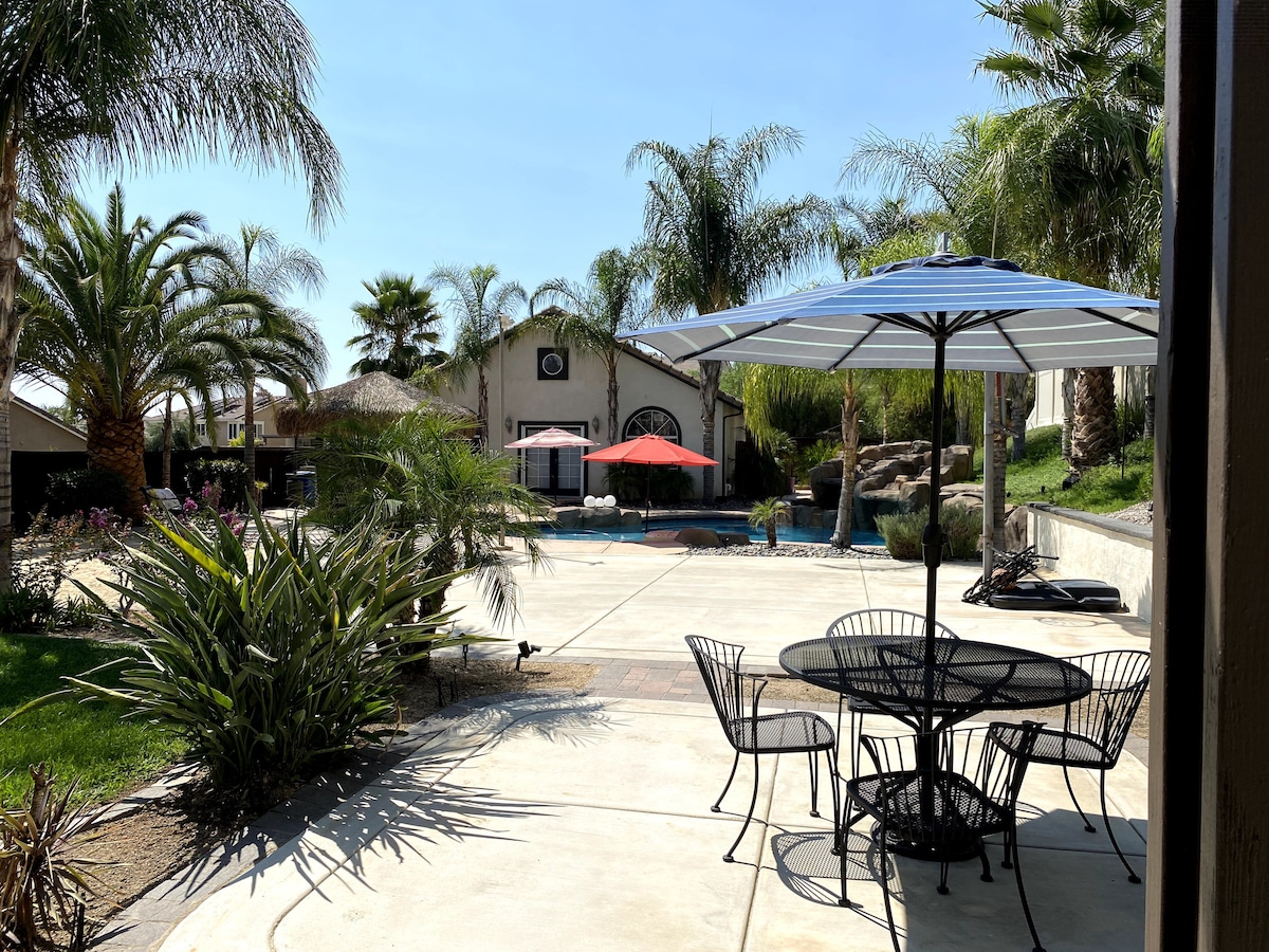 Απλωθείτε και χαλαρώστε στο ευρύχωρο μπανγκαλόου Pool House 800 τετραγωνικών ποδιών σε ένα ακίνητο 1/2 στρεμμάτων μόλις 3 μίλια από την Temecula Wine Country. Απολαύστε μια χαλαρή ατμόσφαιρα και πρόσβαση σε πισίνα, σπα, τζάκι, μπιλιάρδο, μπάσκετ και πολλά άλλα. Περάστε ζεστές μέρες χαλαρώνοντας δίπλα στην πισίνα και δροσερές νύχτες με ένα ποτήρι κρασί στο σπα ή s'mores δίπλα στο τζάκι. Βρίσκεται στην καρδιά της κοιλάδας Temecula και κοντά σε ΟΛΑ, συμπεριλαμβανομένων των Temecula Wine Country, της ιστορικής Παλιάς Πόλης Temecula, του Pechanga Resort & Casino και άλλων.