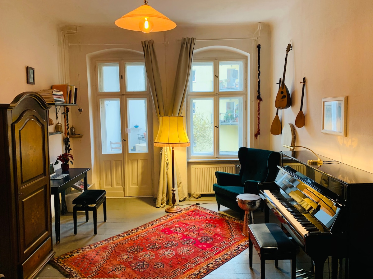 Όμορφα διακοσμημένο δωμάτιο με εντυπωσιακά ψηλά ταβάνια και φυσικό φως. Το διαμέρισμα βρίσκεται στην καρδιά του Neukölln στο Βερολίνο. Θεωρείται μια από τις πιο δυναμικές γειτονιές του κόσμου. Βγείτε από την πόρτα και βρίσκεστε στην καρδιά όλων αυτών. Αντιπροσωπεύει την πραγματική εμπειρία του Βερολίνου. Είναι ένα πολύ ήσυχο διαμέρισμα. Ιδανικό για έναν ιδιώτη που ταξιδεύει για επαγγελματικούς σκοπούς, μοναχικούς λάτρεις της περιπέτειας, ζευγάρια και ειδικά για μουσικούς! Έχω ένα υπέροχο πιάνο Bechstein και μερικά άλλα έγχορδα στο δωμάτιο!