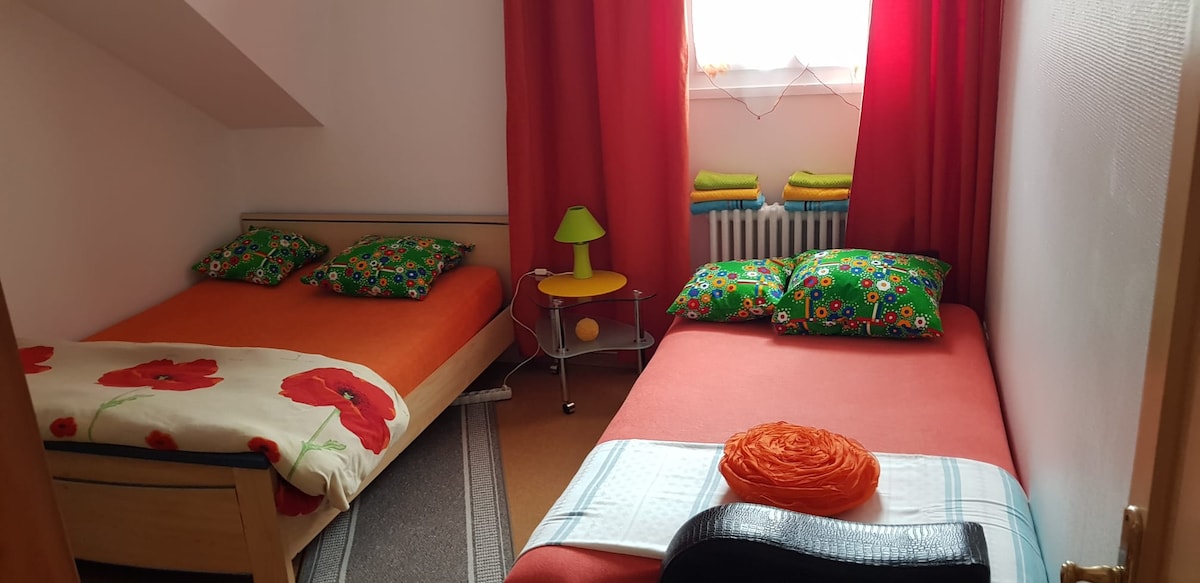 Ενοικίαση 2 ιδιωτικών δωματίων σε ένα όμορφο παλιό σπίτι στο Montbéliard, 10 λεπτά από τον σιδηροδρομικό σταθμό και το κέντρο της πόλης. Βρισκόμαστε 15 λεπτά με τα πόδια από το κέντρο της πόλης, (ιδανικό για να πάτε στη χριστουγεννιάτικη αγορά, μία από τις πιο ενδιαφέρουσες στην περιοχή) και κοντά στο UTBM, προσφέρουμε ειδικές τιμές για τους μαθητές ανάλογα με τη διάρκεια της διαμονής σας. Βρισκόμαστε 200 μέτρα από τον ποδηλατικό δρόμο Euro για τη βραδινή σας στάση. Εύκολη στάση για τα επαγγελματικά σας ταξίδια.