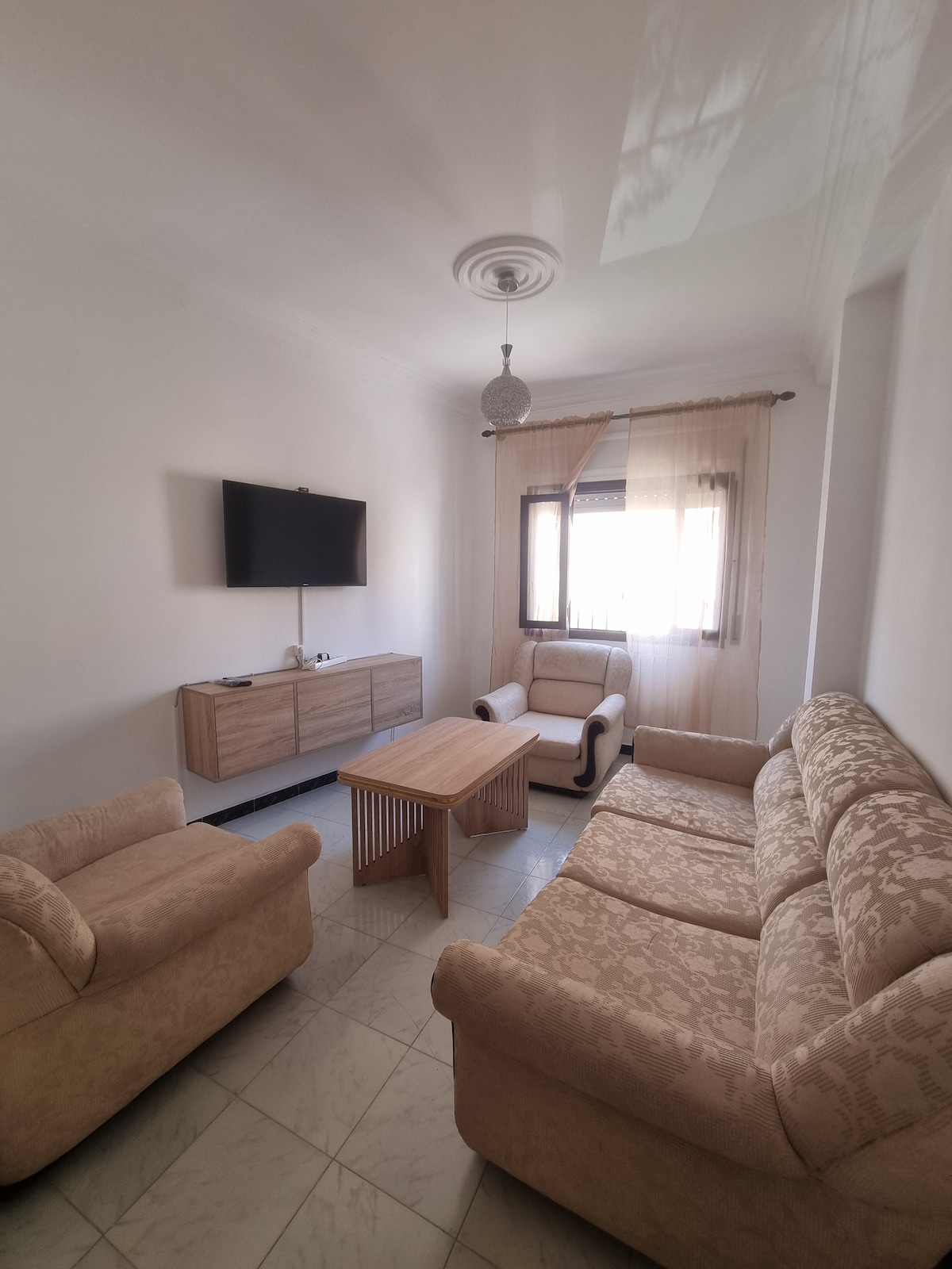 Καλώς ήρθατε σε αυτό το διαμέρισμα, που βρίσκεται στην καρδιά της wilaya του Τετουάν. Είτε βρίσκεστε σε επαγγελματικό ταξίδι είτε σε διακοπές, αυτό το διαμέρισμα είναι το κατάλληλο μέρος για να μείνετε. Αυτό το ευρύχωρο διαμέρισμα 3 υπνοδωματίων και 2 μπάνιων είναι πλήρως εξοπλισμένο για να κάνει τη διαμονή σας ευχάριστη. Περιλαμβάνει: Φωτεινό σαλόνι Μια μοντέρνα, πλήρως εξοπλισμένη κουζίνα Δωρεάν wifi και κλιματισμός για την άνεσή σας Κανόνες Σπιτιού: Απαγορεύεται το κάπνισμα. Δεν επιτρέπονται τα κατοικίδια.