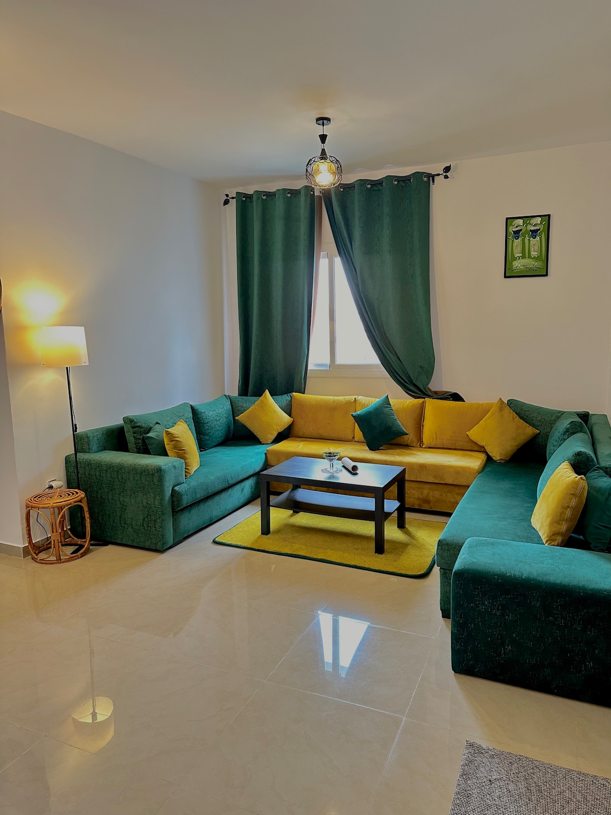 ✨Το διαμέρισμα Panoramic στο Les Jardins Bleus χαρακτηρίζεται από τον μοντέρνο και κομψό σχεδιασμό του, με κάθε στοιχείο να είναι προσεκτικά σχεδιασμένο για να σας εγγυάται μια απαράμιλλη εμπειρία Κεντρική ✨τοποθεσία ✅ Διαμέρισμα με πανοραμική θέα στη θάλασσα και κοντά σε: ✅ 1 λεπτό από την παραλία Martil 🏖 και το διάσημο Corniche ✅ 5 λεπτά από την παραλία Cabo Negro 🏝 ✅ 4 λεπτά από το ΙΚΕΑ και το KFC 🍗 ✅ 6 λεπτά από το Marjane και τα McDonald's 🍟 ✅ 1 λεπτό από εστιατόρια, καφετέριες, καταστήματα