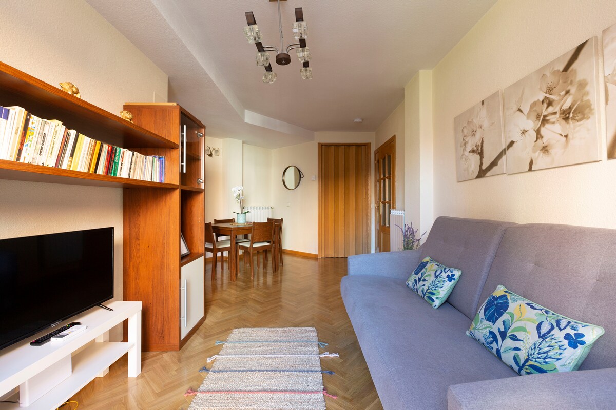 Διαμέρισμα στο επίπεδο του δρόμου. Ιδανικό για επαγγελματικά ταξίδια, ταξίδια μελέτης, ιατρικά θέματα κ.λπ. με κεραμικές εστίες, ψυγείο, πλυντήριο/στεγνωτήριο, πλυντήριο πιάτων, αντλία ζεστού/κρύου αέρα, φούρνο μικροκυμάτων, Nespresso, πλήρη μαγειρικά σκεύη, βραστήρα για αφεψήματα, διπλό κρεβάτι, καναπέ-κρεβάτι 190x150, έξυπνη τηλεόραση, Wi-Fi, συναγερμό, απευθείας γραμμή μετρό προς Sol (15"), μεγάλο μπάνιο, ντους βροχής, αυτόματους διανομείς τζελ. Χώρος κήπου, πολύ εύκολο πάρκινγκ, με δύο παιδικές χαρές με κούνιες