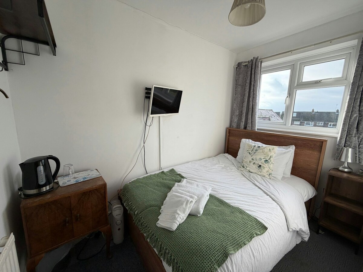 Ένα κομψό και ευρύχωρο δωμάτιο σε ένα μεγάλο σπίτι στο κέντρο του Margate με ένα παράθυρο που βλέπει στο Dreamlands και τη θάλασσα. Αυτό το δωμάτιο φιλοξενεί 2 άτομα σε ένα κρεβάτι Super King με βαθιά στρώματα και υποαλλεργικά κλινοσκεπάσματα από αιγυπτιακό βαμβάκι. Το κρεβάτι μπορεί επίσης να μετατραπεί σε 2 μονά κρεβάτια για να γίνει δίκλινο δωμάτιο. Χαλαρώστε στο μεγάλο και ευάερο κοινόχρηστο σαλόνι και στους χώρους τραπεζαρίας, χαλαρώστε στον κήπο της αυλής και στο τζακούζι ή αξιοποιήστε στο έπακρο τις παραλίες του Margate που απέχουν μόλις 5 λεπτά.