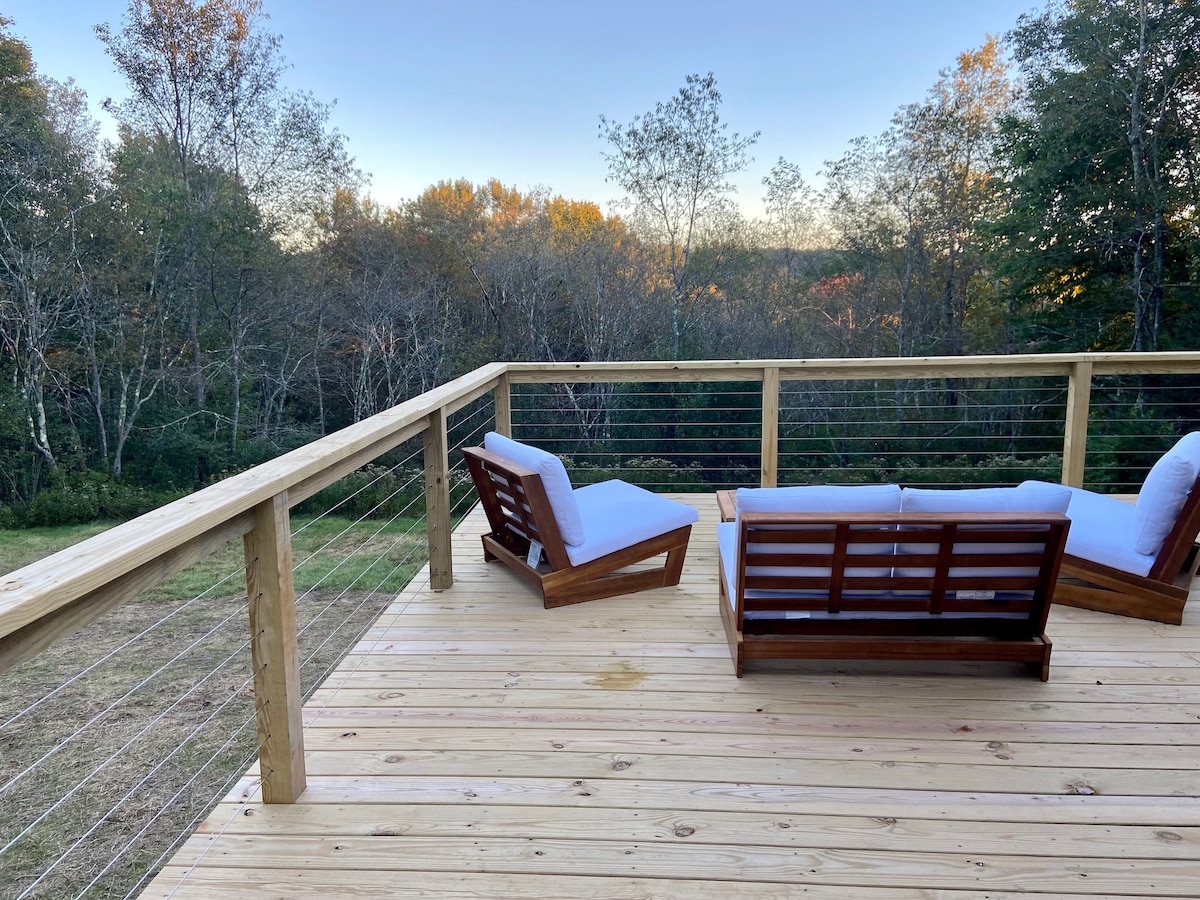 Ιδανική απόδραση για φίλους και ζευγάρια! Βρείτε μια νέα κατάσταση χαλάρωσης καθώς ξυπνάτε με μια εκπληκτική θέα στο βουνό/λιμνούλα από την κλειστή, σκεπαστή βεράντα. Χαλαρώστε γύρω από τη σόμπα ξύλου ενώ παρακολουθείτε μια καλή ταινία ή κάντε μια βόλτα στην ιδιοκτησία. Το βράδυ, παρακολουθήστε τα αστέρια γύρω από το τζάκι εξωτερικού χώρου ή λύστε ένα ή δύο παζλ. Θα νιώσετε πραγματικά συνδεδεμένοι με τη φύση ενώ βρίσκεστε μόνο 2 ώρες από τη Νέα Υόρκη.