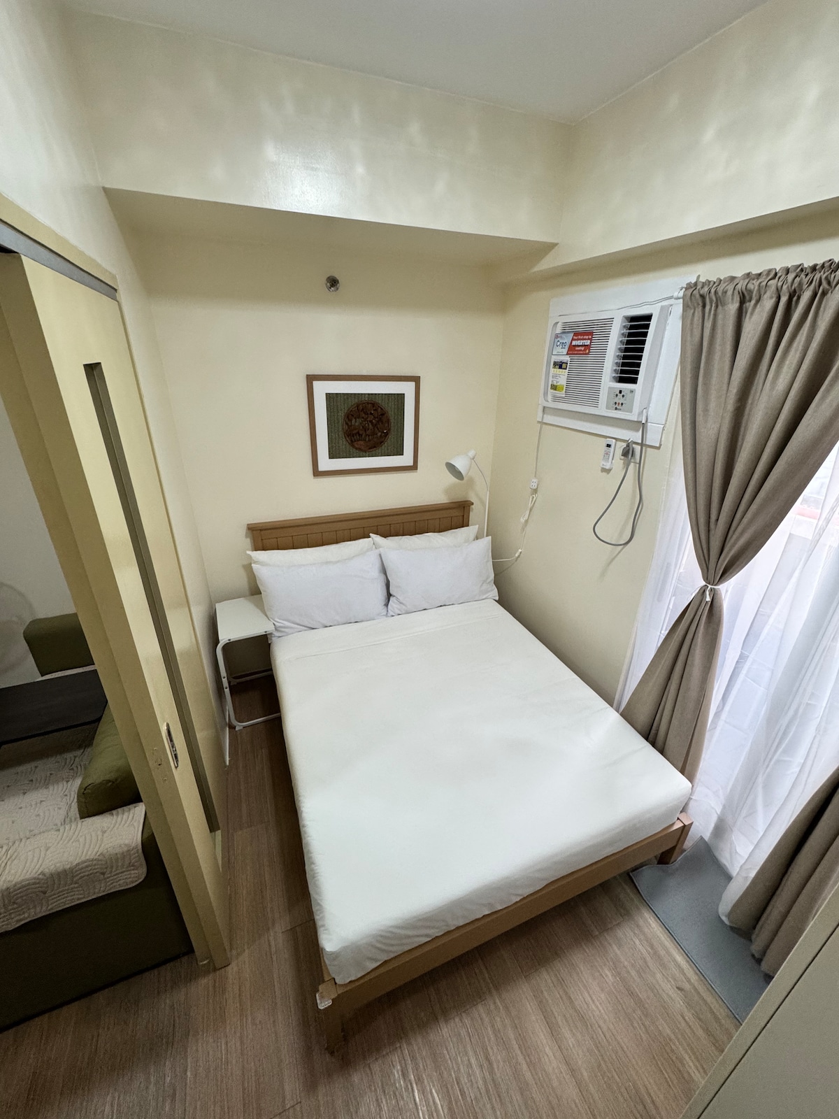 Welcome to your cozy and stylish studio in the heart of Makati CBD! Ideal for business travelers, staycations, or airport layovers. Comfortably fits 3 with a queen bed and pull-out. Enjoy 20mbps WiFi, Smart TV with Netflix, and a fully equipped kitchenette with induction stove, microwave, fridge, pots, and utensils. Walk to Little Tokyo, Makati Cinema Square, Greenbelt, Glorietta. Building has a pool, kiddie pool, gym (fee), and paid parking (subject to availability).