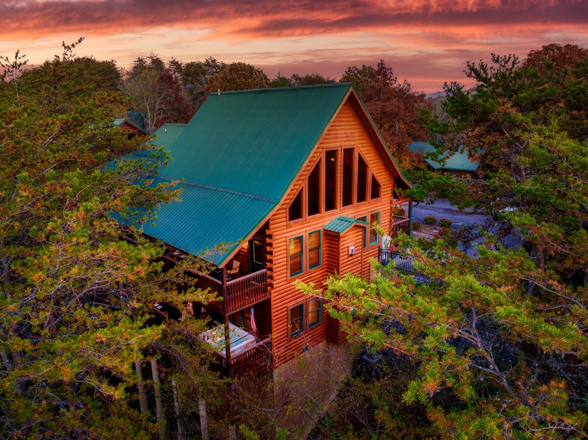 Εκπληκτική θέα στο βουνό - Σύγχρονες ανέσεις! Αυτό το ξυλόσπιτο δύο επιπέδων προσφέρει εκπληκτική θέα στο βουνό. Είτε χαλαρώνετε στις κουνιστές πολυθρόνες στις βεράνες, είτε απολαμβάνετε το τζακούζι στον επάνω όροφο, είτε χαλαρώνετε στο υδρομασάζ στην πίσω βεράντα, το τοπίο θα σας αφήσει με το στόμα ανοιχτό. Βολικά τοποθετημένο 25 λεπτά από τα Great Smokey Mountains. •Ξυλόσπιτο δύο επιπέδων •Θέα στο βουνό •Μπιλιάρδο •Τζακούζι •Τζακούζι •Μεγάλη τηλεόραση Smart TV •Κούνια στην αυλή