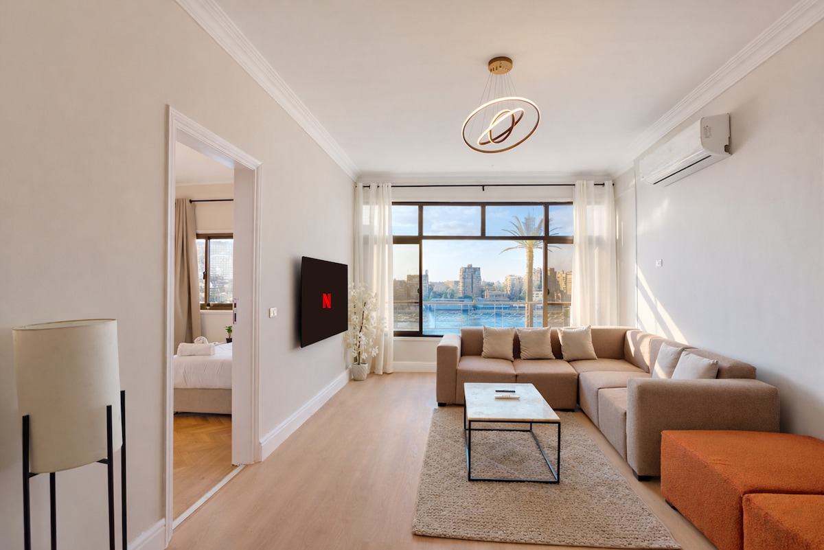 Indulge in a 5-star living experience in this elegantly designed, fully furnished 2-bedroom hotel-style apartment in the heart of Mohandessin. Perfect for business and leisure travelers, this prime location offers unparalleled comfort, modern amenities, and effortless convenience. , featuring: ✔ Premium furnishings & elegant decor ✔ High-speed internet & smart TVs ✔ Fully equipped kitchen for a seamless stay ✔ 24/7 security & concierge service ✔ Scenic view of Zamalek Club