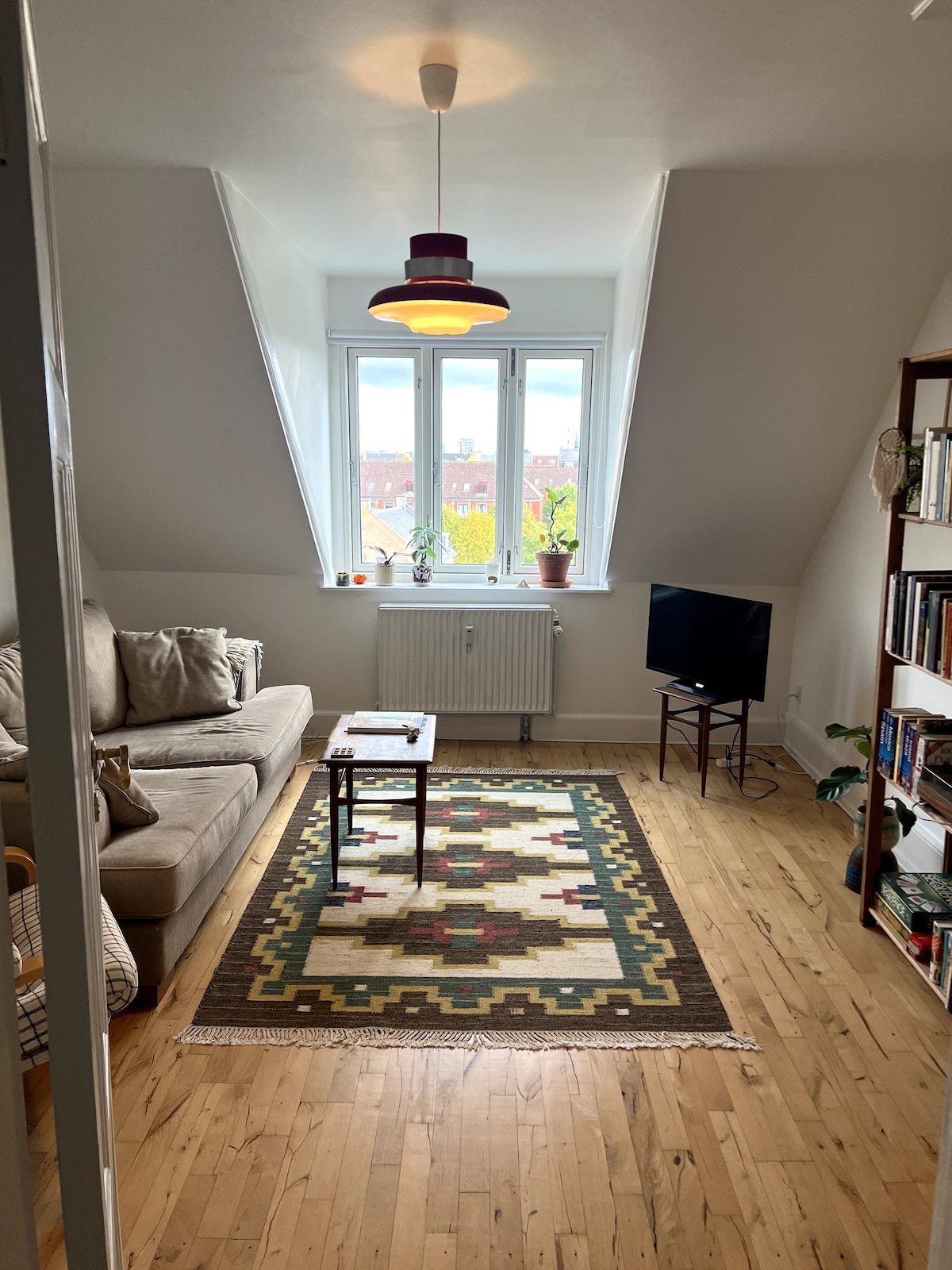 Περιπετειώδες διαμέρισμα σε γοητευτικό και ήσυχο δρόμο στην καρδιά της παλιάς Κοπεγχάγης. Κάτω από τη στέγη, σε ένα κτίριο από το 1847, βρίσκεται αυτό το ρετιρέ, με εκτεθειμένα δοκάρια και θέα στις στέγες της πόλης και τους πύργους της Κοπεγχάγης. 2 λεπτά από την πλατεία του Δημαρχείου είναι μια όαση όπου η ζεστασιά, η ομορφιά και η αφήγηση ιστοριών είναι υψίστης σημασίας. Διακοσμημένο με άνετα μοντέρνα έπιπλα και μια συλλογή από προσεκτικά επιλεγμένες αντίκες και ευρήματα από ψύλλους που αντικατοπτρίζουν ένα γενναιόδωρο, ζεστό και βαθιά προσωπικό στυλ.