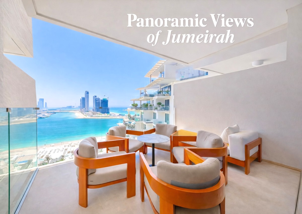 Experience beachfront living at Grand Bleu Tower on Dubai’s exclusive Emaar Beachfront. This stylish 1BR offers breathtaking views of the Atlantis, Palm Jumeirah and Arabian Sea — stunning by day, mesmerizing at sunset, and sparkling at night. Unwind by the infinity pool, relax on the private beach, or enjoy the calm from your balcony. Designed for comfort and elegance, it’s the perfect setting for an unforgettable Dubai stay.