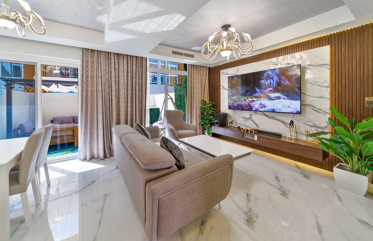 Your deluxe SMART home is 10 minutes from the beach in the upscale Jumeirah Lakes Towers neighborhood. Use your voice to control the lights and play music, as well as enjoy the memory foam king bed and comfy day bed as you watch Disney+ on a 55 inch 4K HDTV. You are only 1 minute from the metro with free parking, gym, and sauna. Life can’t be more convenient with dozens of restaurants and shops at your doorstep. Note: Building swimming pool is closed for maintenance until further notice.