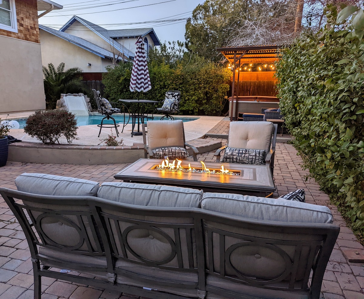 Our beautiful adobe pool house is a Tucson gem. Comfortable queen bed, fireplace, and stylish modern furnishings with large windows looking out to trees and sparkling pool. Vaulted ceilings and natural light make for a restful space. Located in historic Jefferson Park, it’s a midtown oasis close to the UofA and two blocks from the UMC/Banner Medical Center. Midtown/University location allows for convenient access to all of Tucson. *Newly improved high speed WiFi 11/1/2021