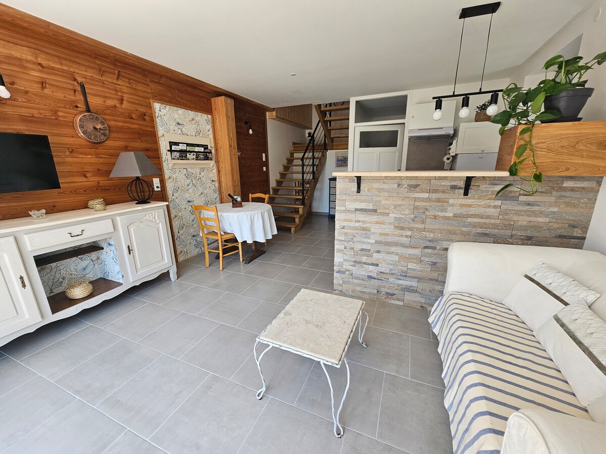 Καλώς ήρθατε, το κατάλυμά μας διαθέτει υπνοδωμάτιο με διπλό κρεβάτι και τη δυνατότητα προσθήκης βρεφικού κρεβατιού ή κρεβατιού 90, καθώς και τη δυνατότητα φιλοξενίας ενός ή δύο παιδιών ή εφήβων (καναπές-κρεβάτι). Εξοπλισμένη κουζίνα (φούρνος μικροκυμάτων, βραστήρας, μηχανή Senseo), σαλόνι, μπάνιο με ντους, μεγάλος κοινόχρηστος κήπος, βεράντα με τραπέζι για φαγητό σε εξωτερικό χώρο κ.λπ. Πολλά τουριστικά μέρη σε απόσταση 15 χιλιομέτρων από το κατάλυμα. Μέρη για μπάνια και πεζοπορία