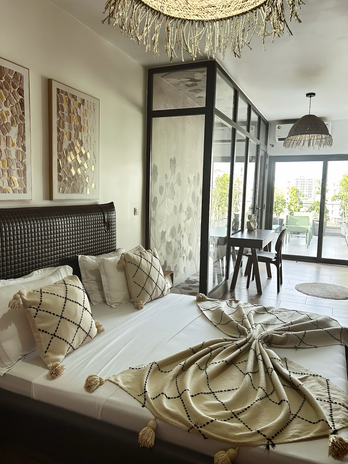 Refined luxury in the heart of Fann Résidence, one of Dakar’s most prestigious and secure addresses. Designed for discerning business travelers and couples, this elegant 1BR offers privacy, comfort and high-end finishes. Bright living space, modern bathroom plus guest toilet, private patio and high-speed WiFi. Heated pool, fully equipped modern gym, panoramic rooftop, 24/7 security and private parking.