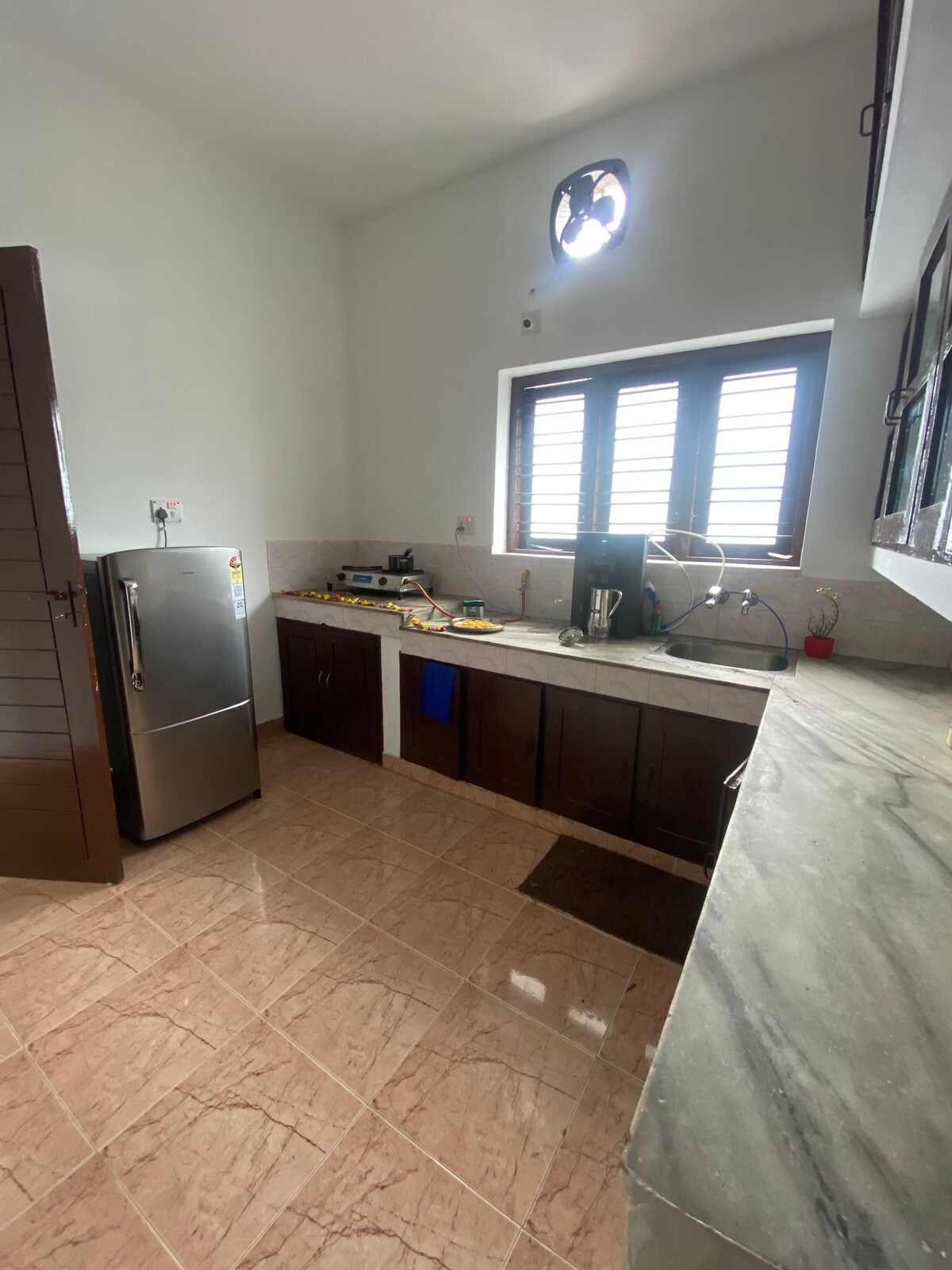 Καλώς ήρθατε στο Padnamabham, το γαλήνιο καταφύγιό σας στο Trivandrum! Μόλις 5 λεπτά από το αεροδρόμιο του Trivandrum και τον ναό Padmanabha Swamy και 20 λεπτά από την παραλία Kovalam, η πλήρως επιπλωμένη βίλα μας 3 υπνοδωματίων είναι ιδανική για διαμονές μεγάλης διάρκειας. Απολαύστε σύγχρονες ανέσεις, όπως ένα άνετο σαλόνι με τηλεόραση 55 ιντσών, Wi-Fi υψηλής ταχύτητας και πλήρως εξοπλισμένη κουζίνα. Χαλαρώστε στο ευρύχωρο μπαλκόνι που περιβάλλεται από πράσινο, ιδανικό για να χαλαρώσετε αφού εξερευνήσετε τα καλύτερα αξιοθέατα του Trivandrum.