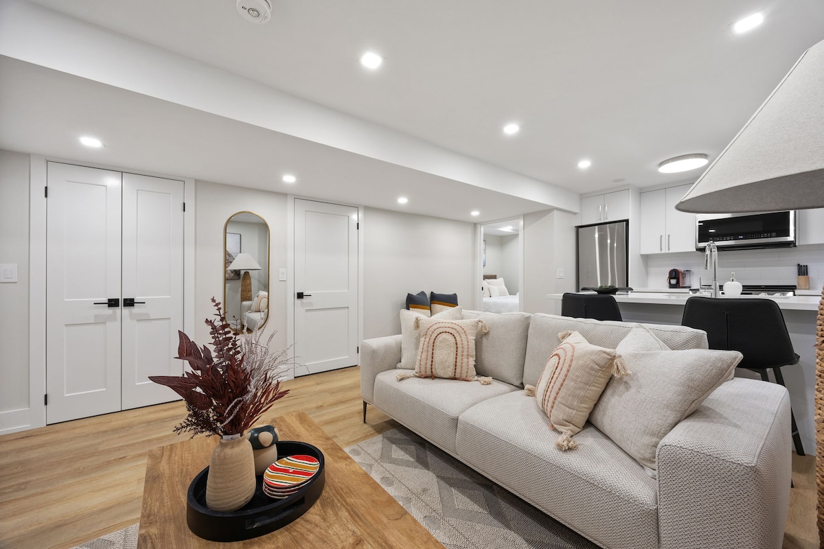 Απολαύστε μια κομψή και ήρεμη διαμονή σε αυτό το κεντρικό κατάλυμα ενός υπνοδωματίου σε χαμηλότερο επίπεδο, ιδανικό τόσο για αναψυχή όσο και για επαγγελματικούς ταξιδιώτες. Με ιδιωτική είσοδο, χώρο στάθμευσης και όλα τα απαραίτητα, είναι το ιδανικό σπίτι σας μακριά από το σπίτι σας. Τα χαρακτηριστικά περιλαμβάνουν πλήρως εξοπλισμένη κουζίνα, μπάνιο, ίντερνετ, έξυπνη τηλεόραση, ένα queen size κρεβάτι και έναν καναπέ-κρεβάτι, καθώς και έναν λειτουργικό χώρο εργασίας. Λίγα βήματα από το FreshCo, το Walmart, εστιατόρια και υπηρεσίες. Λίγα λεπτά από το Vaughan Mills, το Canada's Wonderland, το Cortellucci Hospital και τις συγκοινωνίες.