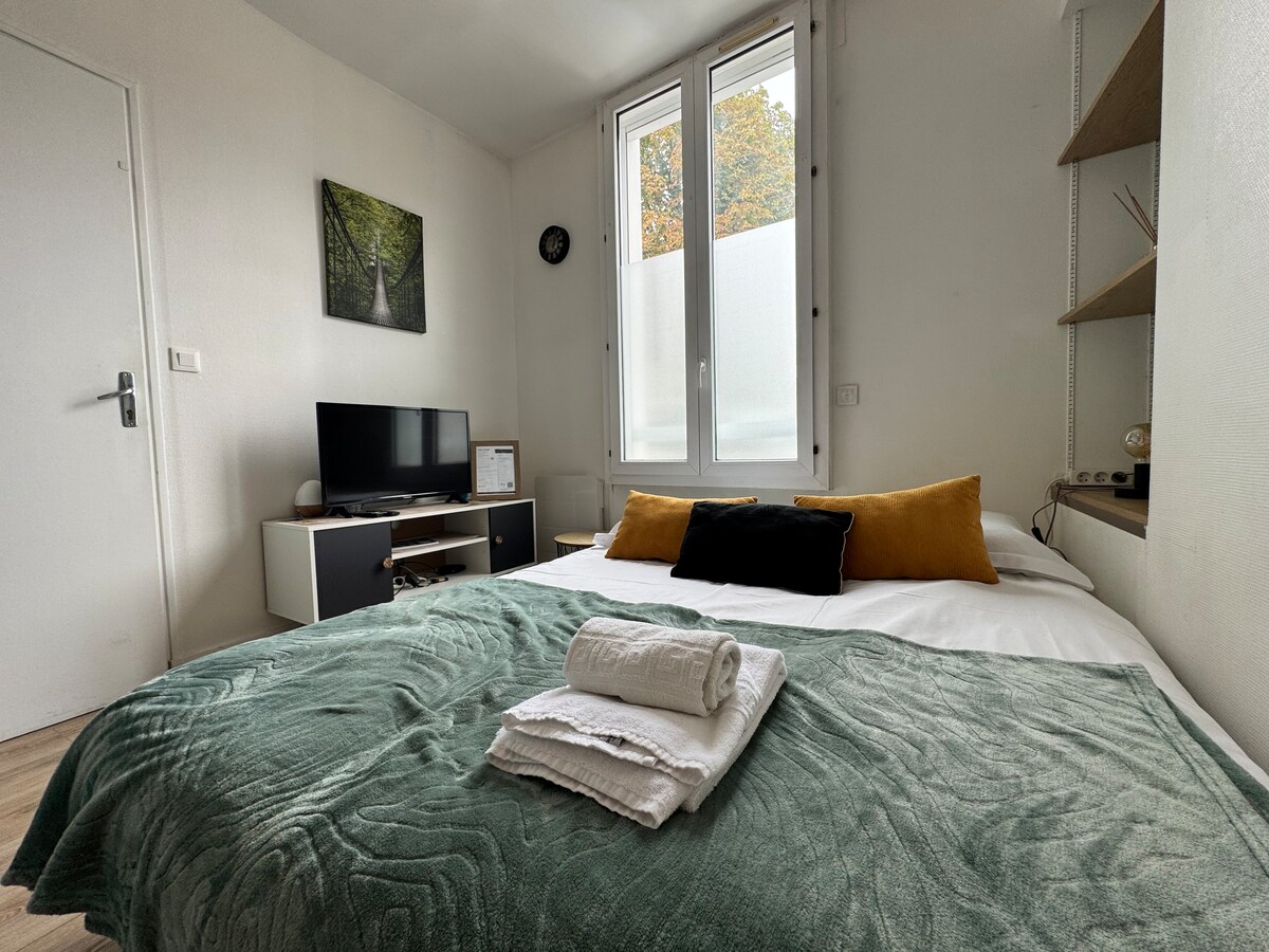 Studio cosy idéalement situé à Thouars, dans les Deux-Sèvres. À deux pas du cinéma, des restaurants et du marché. Parfait pour un séjour agréable, il dispose de tout le nécessaire : cuisine équipée avec frigo, micro-ondes, grille-pain et ustensiles de qualité. Connexion Wi-Fi, télévision, linge de lit et serviettes fournis. Un petit cocon chaleureux pour se sentir comme chez soi.