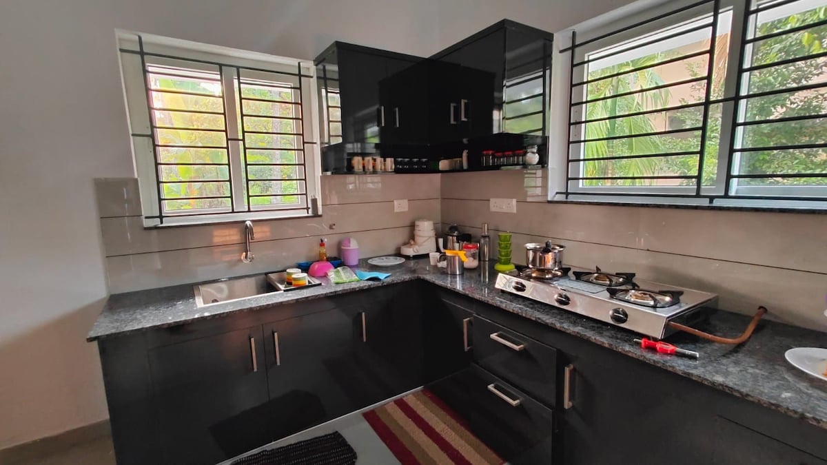 🌿 Αυτή η κομψή, πλήρως επιπλωμένη βίλα 2 υπνοδωματίων είναι μία από τις δύο βίλες σε ένα κλειστό συγκρότημα 40 στρεμμάτων. 🏡 Βολικά τοποθετημένο κοντά στον αυτοκινητόδρομο που συνδέει το Διεθνές Αεροδρόμιο της Κοτσίν και το Ερνακούλαμ. Λίγα λεπτά με τα πόδια από το σταθμό του μετρό, που προσφέρει γρήγορη πρόσβαση στα κορυφαία αξιοθέατα της πόλης. 🛏️ Σημαντικότερα σημεία: Ιδιωτικό κλειστό συγκρότημα με άφθονο χώρο στάθμευσης. Ιδανικό για οικογένειες που αναζητούν ασφάλεια, άνεση και ευκολία. Σημείωση: Δεχόμαστε μόνο οικογενειακές ομάδες. Για άλλους επισκέπτες, στείλτε μας μήνυμα πριν κάνετε κράτηση.