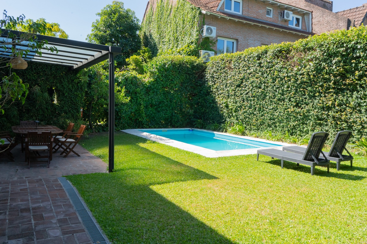 Σπίτι με σαλόνι, τραπεζαρία, παιχνίδι ή μπάρμπεκιου, 1 υπνοδωμάτιο με ιδιωτικό μπάνιο και γκαρνταρόμπα, ένα υπνοδωμάτιο με 4 μονά κρεβάτια, συν 1 βοηθητικό, πλήρως εξοπλισμένη κουζίνα με πλυντήριο ρούχων, 2 μπάνια, 1 τουαλέτα, κήπο, πισίνα, ψησταριά και γκαλερί. Βρίσκεται στην ήσυχη γειτονιά της Horqueta, με δέντρα και ασφάλεια. Το εμπορικό κέντρο βρίσκεται σε απόσταση 700 μέτρων με επιχειρήσεις όλων των ειδών, μεγάλα σουπερμάρκετ, και διάφορα εστιατόρια. Η τοποθεσία του προσφέρει μια καλή σύνδεση με την πρωτεύουσα της Μπουένος Άιρες.