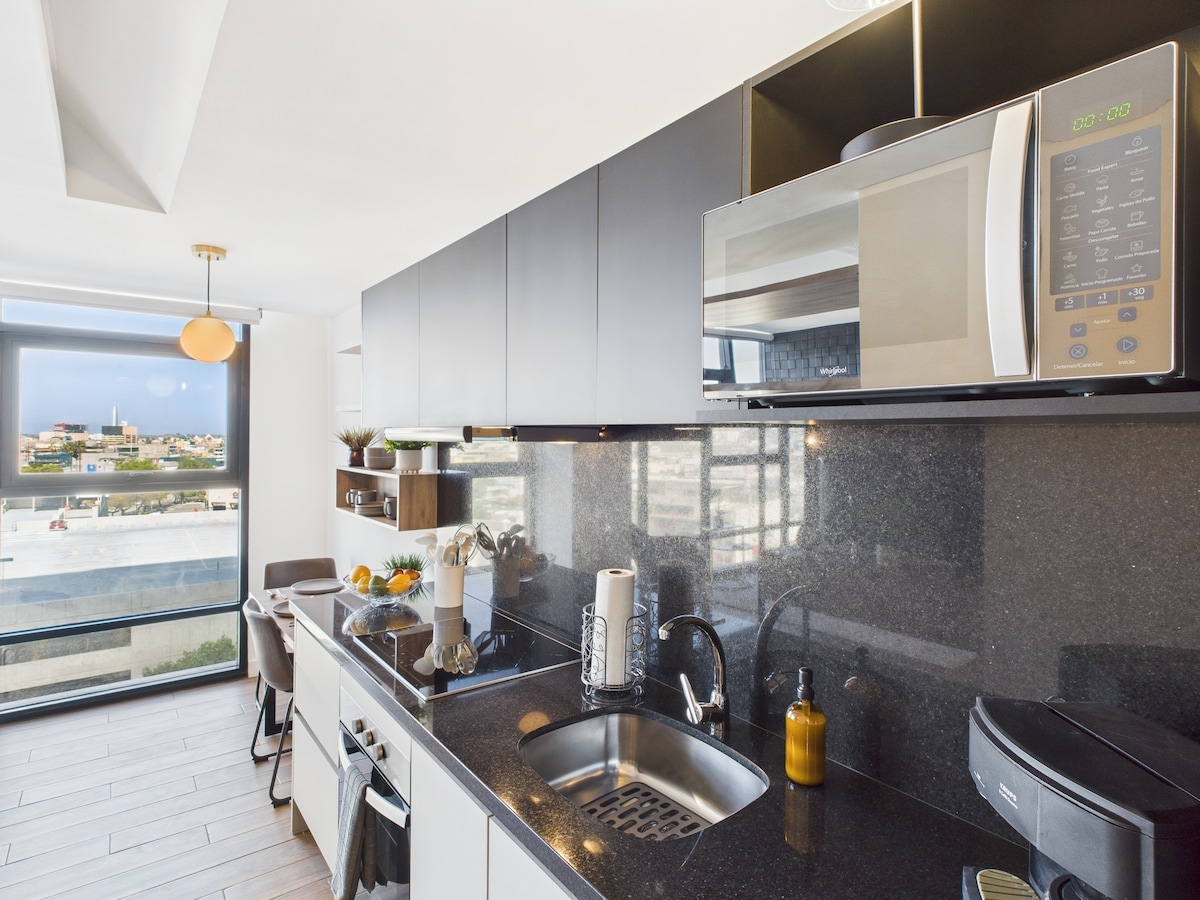 Απολαύστε μια εμπειρία με στυλ σε αυτό το κατάλυμα που βρίσκεται 10 λεπτά με το αυτοκίνητο από τη διεθνή διασταύρωση, 10 λεπτά με τα πόδια από την τουριστική περιοχή. Με θέα το κέντρο της Τιχουάνα. Κοντά σε καφετέριες και εστιατόρια της περιοχής. Άνετο και ασφαλές για περπάτημα, με εσωτερική ασφάλεια 24 ώρες το 24ωρο. Το διαμέρισμα διαθέτει δύο μπαλκόνια και εξαιρετικό φωτισμό, παράθυρα από το δάπεδο μέχρι την οροφή με στόρια πλήρους συσκότισης για περισσότερο έλεγχο του φωτισμού.