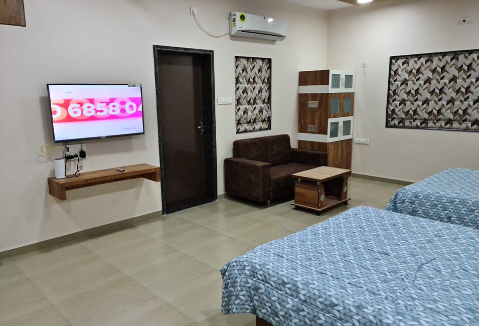 Αυτό το όμορφο διαμέρισμα στούντιο βρίσκεται στο τμήμα Ντύμας του Σουράτ, αυτή η ιδιοκτησία σας φέρνει κοντά στο αεροδρόμιο και διαθέτει 2 εστιατόρια εντός της ιδιοκτησίας με εγκαταστάσεις όπως πισίνα και γυμναστήριο. Διαθέτει ένα υπέρδιπλο κρεβάτι, έναν καναπέ-κρεβάτι με ιδιωτικό μπάνιο. Κανόνες :- Τα άγαμα ζευγάρια επιτρέπονται, αλλά θα πρέπει να είναι τουλάχιστον 20 ετών. Το αλκοόλ και το κάπνισμα απαγορεύονται αυστηρά στο δωμάτιο και εντός των εγκαταστάσεων του ξενοδοχείου. Οι επισκέπτες πρέπει να έχουν υποχρεωτικά έγκυρο αποδεικτικό ταυτότητας στο ψηφιακό ντουλάπι για το check-in.