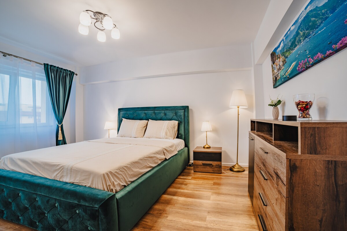 Relax with your family, friends or partner in this wonderful apartment, located in the new Urban Plaza district, residential and quiet area, about 2 km from the old city center, with many attractive places nearby, as well as various shops, restaurants etc. Easy access to public transport, the trolleybus station being 2-3 minutes from the location.