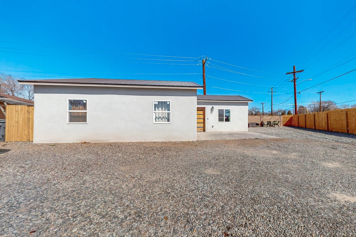 Relax in the south side of this eco-chic adobe duplex! Close to Downtown, UNM, CNM and the Airport, this is the perfect spot for your ABQ getaway. The cheery living room opens to a spacious kitchen. In the bedroom, the Keetsa queen mattress has luxurious bamboo sheets and organic pillows. Enjoy complimentary handmade soaps and Los Poblanos shampoo and conditioner. In the evening, the elevated patio is the perfect spot to enjoy New Mexico's beautiful sunsets.