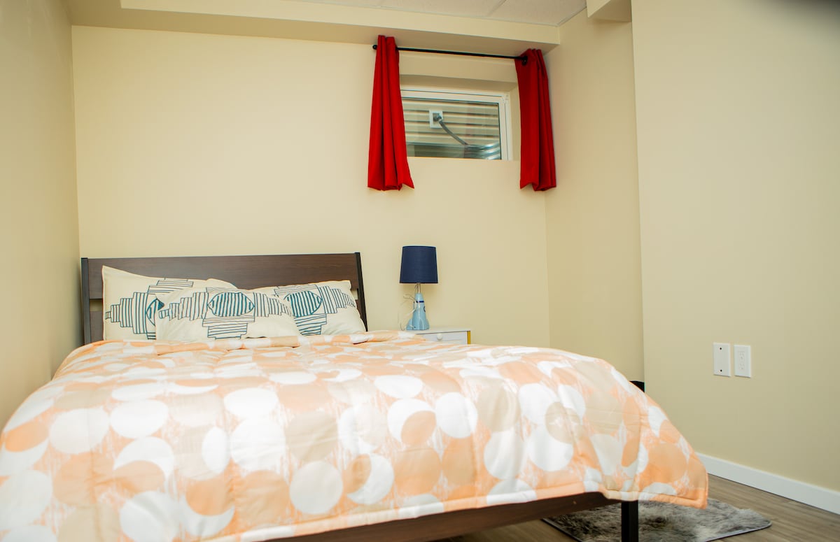 Ψάχνετε για μια απόδραση, ιδιωτικό, ήσυχο και ήρεμο μέρος! Διαμέρισμα 1 υπνοδωματίου στο υπόγειο με κουζίνα που διαθέτει ψυγείο, φούρνο μικροκυμάτων, βραστήρα, καφετιέρα, μαχαιροπίρουνα καθώς και βασικά σκεύη σερβιρίσματος για τη χρήση σας. Το δωμάτιο είναι εξοπλισμένο με ρυθμιζόμενο γραφείο ανάγνωσης και καρέκλα, διάδρομο για άσκηση και ένα κρεβάτι queen που είναι ζεστό και άνετο για τέλειο ύπνο. Παρέχονται φρέσκες/καθαρές πετσέτες. Βρίσκεται σε ένα γαλήνιο περιβάλλον της πόλης με λειτουργικό σύστημα λεωφορείων.