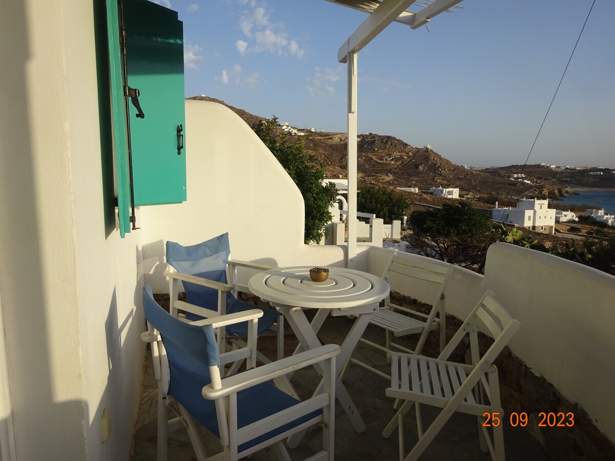 Το δωμάτιο αποτελείται από ένα διπλό κρεβάτι, μίνι μπαρ, καφετιέρα εσπρέσο, έξυπνη τηλεόραση, κλιματισμό και ιδιωτικό μπάνιο με ντους υψηλής πίεσης. Υπάρχει ιδιωτικό μπαλκόνι με εκπληκτική θέα στην πόλη της Μυκόνου και και θέα στο ηλιοβασίλεμα κάθε βράδυ της διαμονής σας. Διατίθεται επίσης δωρεάν WiFi για όλους τους επισκέπτες. Το δωμάτιο βρίσκεται εκατό (100) μέτρα από την παραλία, τα εστιατόρια και τα μπαρ του κέντρου της Μυκόνου.