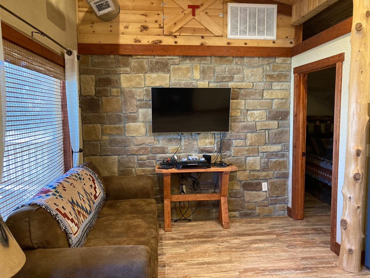 Αυτό είναι το ξυλόσπιτό μας για απόδραση το Σαββατοκύριακο που έχουμε διαθέσει στο κοινό. Μας αρέσει να περνάμε χρόνο σε αυτήν την κοινόχρηστη ιδιοκτησία με ένα επιπλέον Tiny Home Airbnb και θέλουμε να το απολαύσουν και άλλοι! Το ξυλόσπιτο έχει ανοιχτή κάτοψη με θέα από κάθε δωμάτιο! Μπορείτε να καθίσετε μέσα ή έξω και να απολαύσετε τη θέα στην ύπαιθρο του Τέξας/Οκλαχόμα.